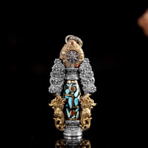 This exquisitely handcrafted pendant is made of premium S925 silver, centered on the sacred Amitabha motif and inlaid with natural turquoise—a revered gemstone in Tibetan Buddhist culture. It carries blessings of peace and transcendence, blending ethnic artistry with timeless elegance for daily wear and spiritual practice.