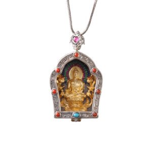 This exquisitely handcrafted pendant centers on the revered Medicine Buddha motif, inlaid with natural turquoise—a gemstone symbolizing healing and protection in Tibetan Buddhist culture. Meticulously made with premium craftsmanship, it carries blessings of health and peace, blending ethnic spirituality with timeless elegance for daily wear and spiritual practice.