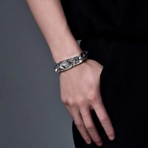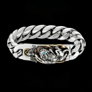 这款纯银貔貅绿松石手链,灵感源自藏传佛教的象征意义和传统的财富护身符,代表着繁荣、保护和内在力量。