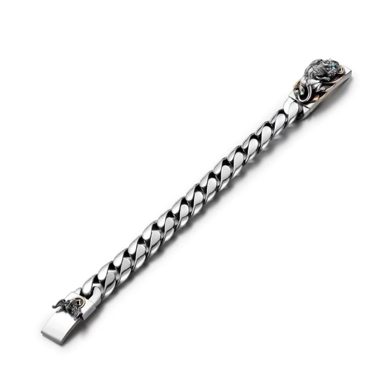 这款手链采用纯银貔貅造型和精心挑选的绿松石珠子制成,将强大的象征意义与精致的男性化设计完美结合。