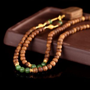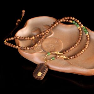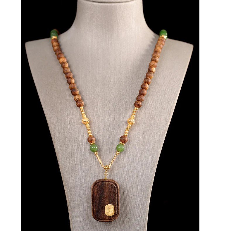 This elegant plain peace pendant is crafted from natural jasper and precious agarwood, two treasured materials in Tibetan culture. Featuring a smooth, unadorned surface that embodies the philosophy of “peace without disturbance”, it carries blessings of safety and tranquility. A perfect blend of ethnic heritage and natural elegance, it is an ideal accessory for daily wear and a valuable addition to any collection.
