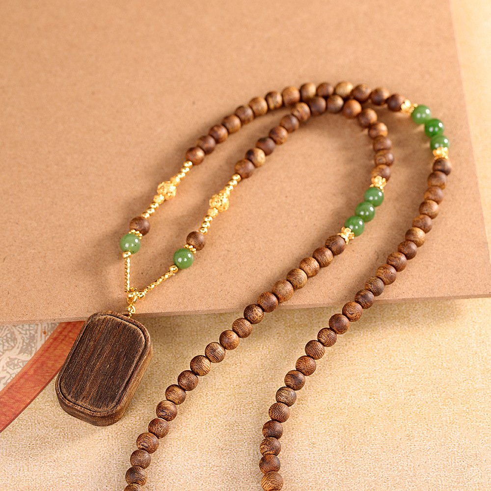 Natural Jasper & Agarwood Tibetan Buddhist Plain Peace Pendant
