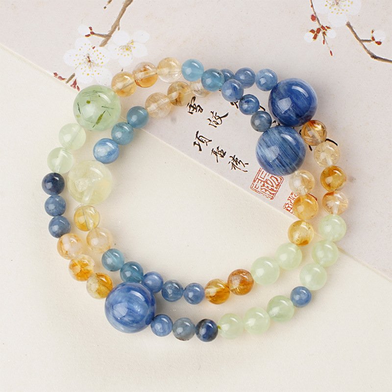 Natural Kyanite & Citrine Tower Crystal Beaded Bracelet for Fortune & Luck