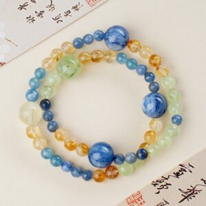 Natural Kyanite & Citrine Tower Crystal Beaded Bracelet for Fortune & Luck