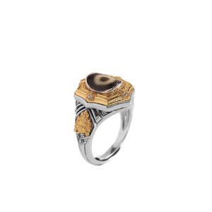 这款精心打造的戒指结合了优质 S925 银和正宗玛瑙天珠,蕴含着藏传佛教的深厚祝福,可带来保护和好运。