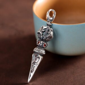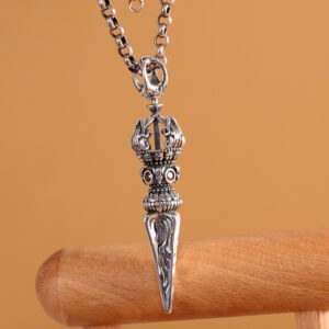 This meticulously handcrafted pendant combines premium S925 silver and the sacred demon-subduing vajra motif, a powerful symbol of protection in Tibetan Buddhism that wards off negative energy and carries blessings of spiritual strength for the wearer.