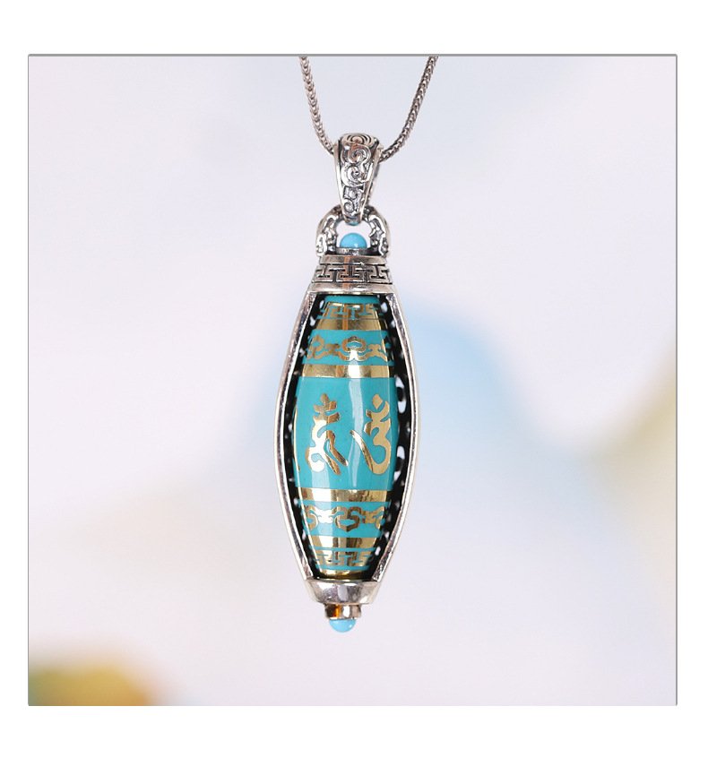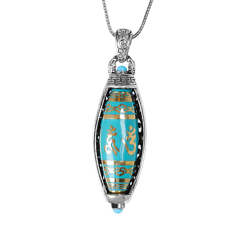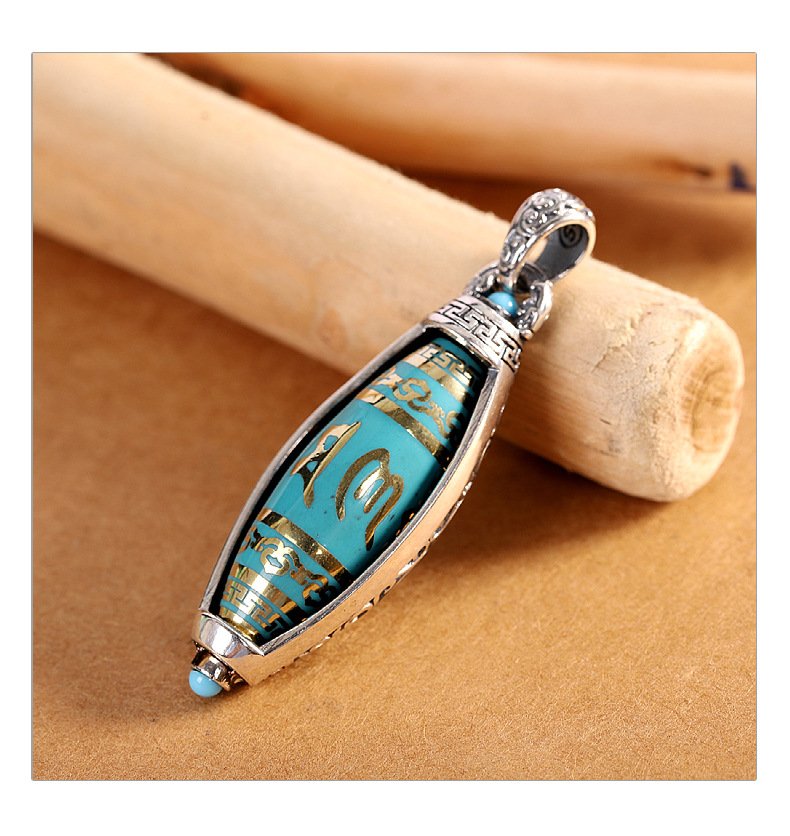 S925 Silver Tibetan Buddhist Premium Dzi Bead Six-Word Mantra Pendant