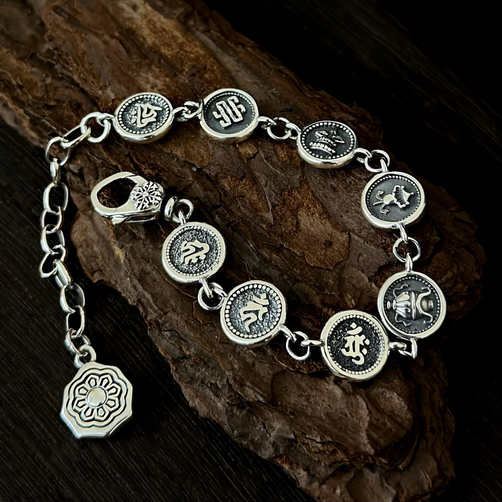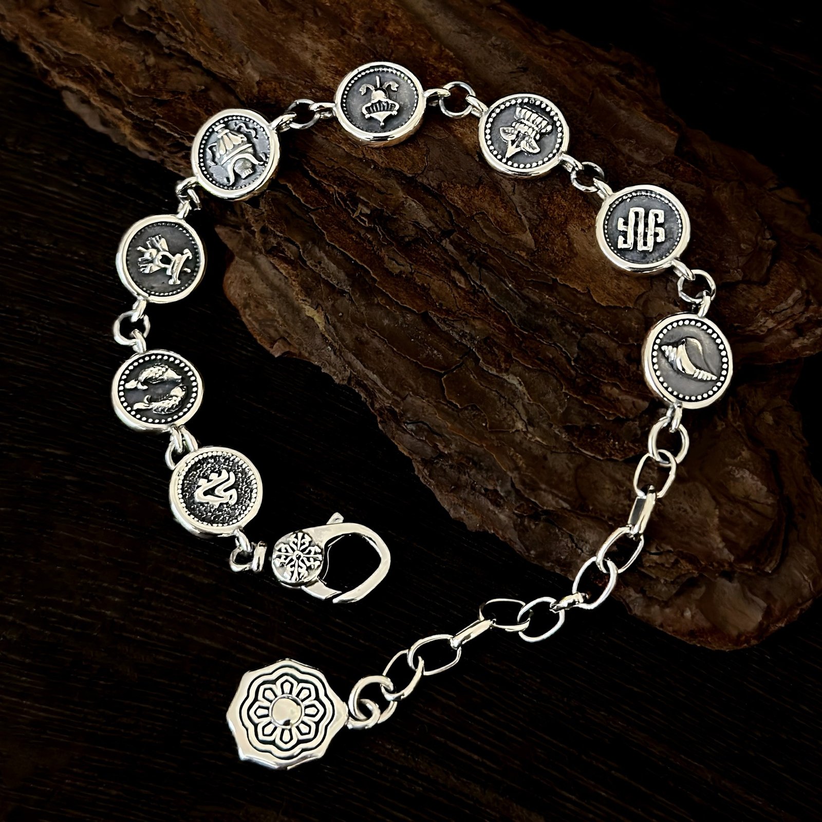 S925 Silver Tibetan Buddhist Premium Eight Auspicious Symbols Bracelet