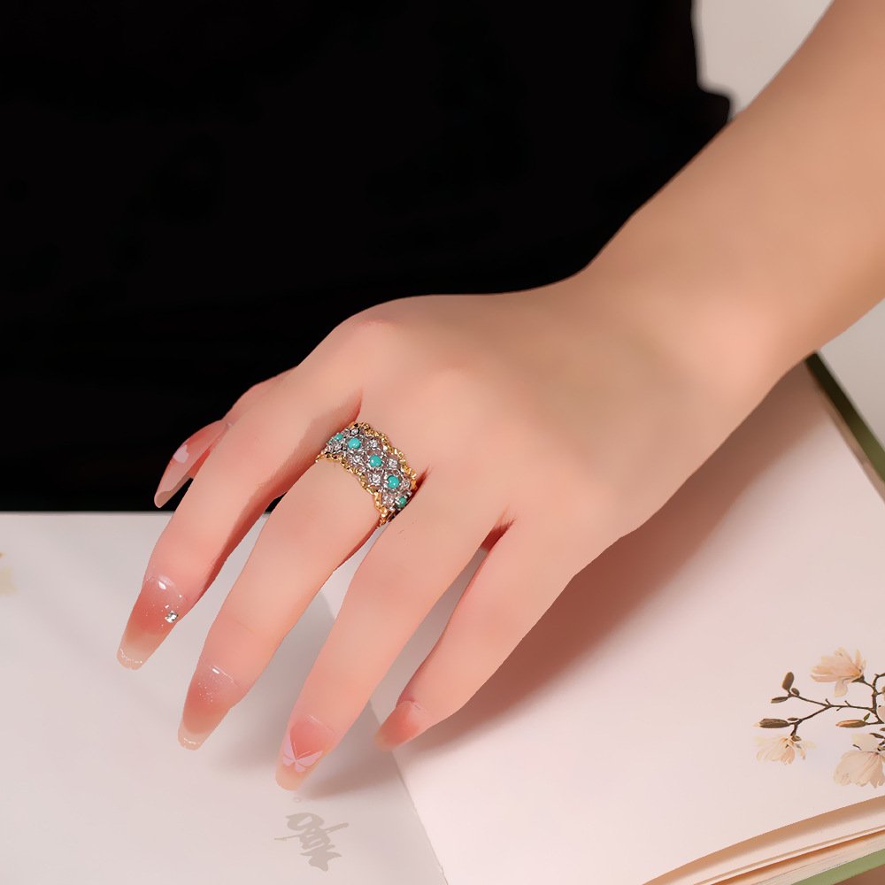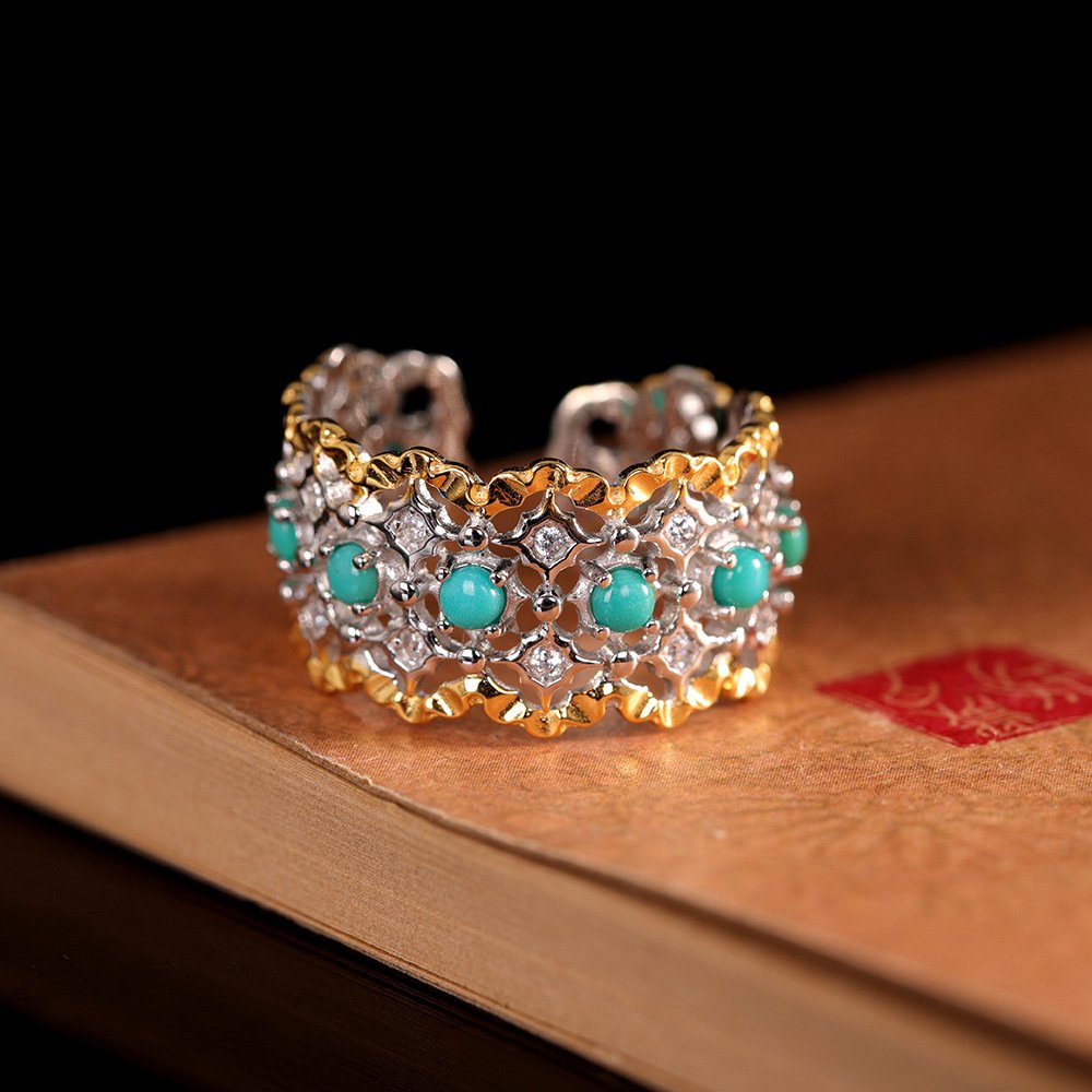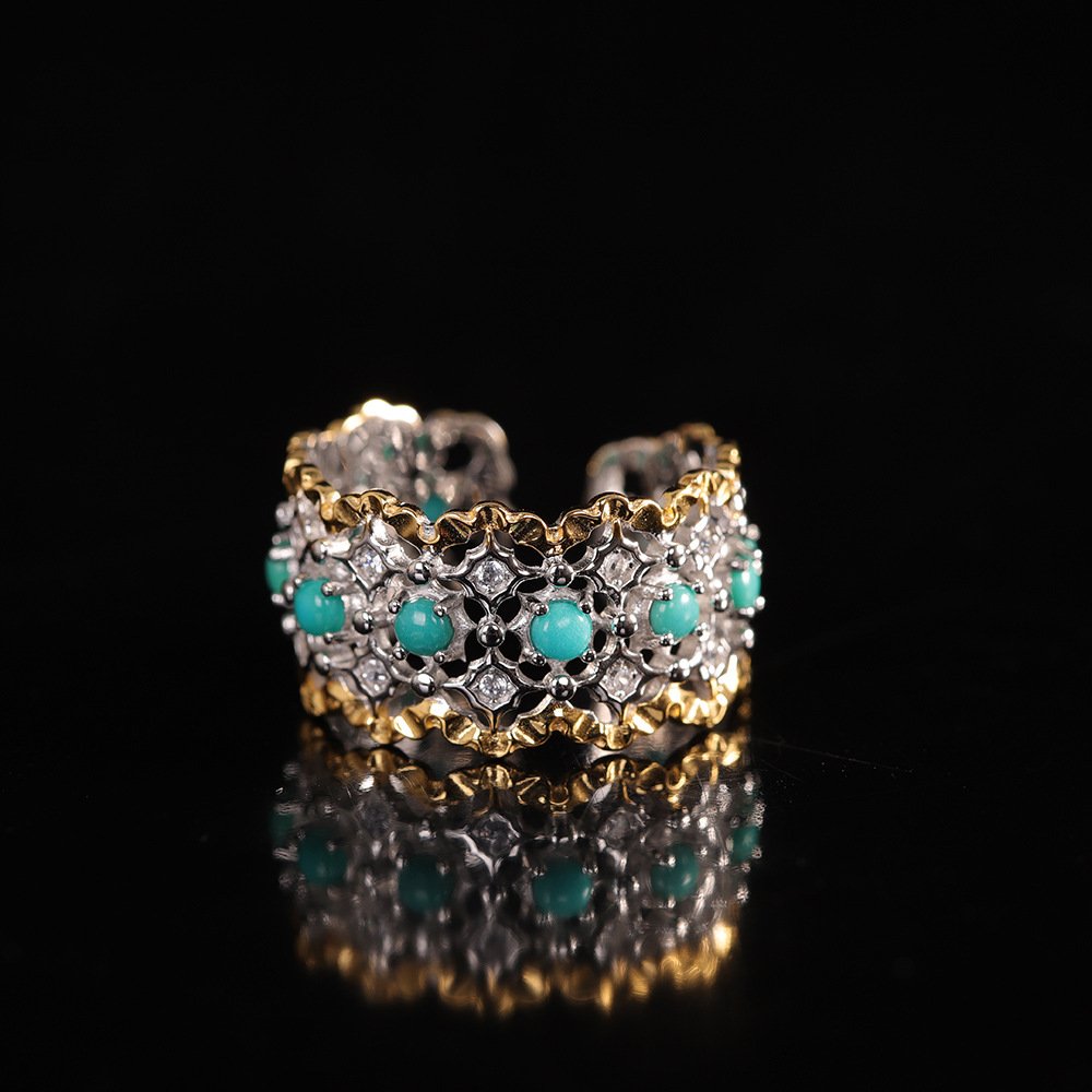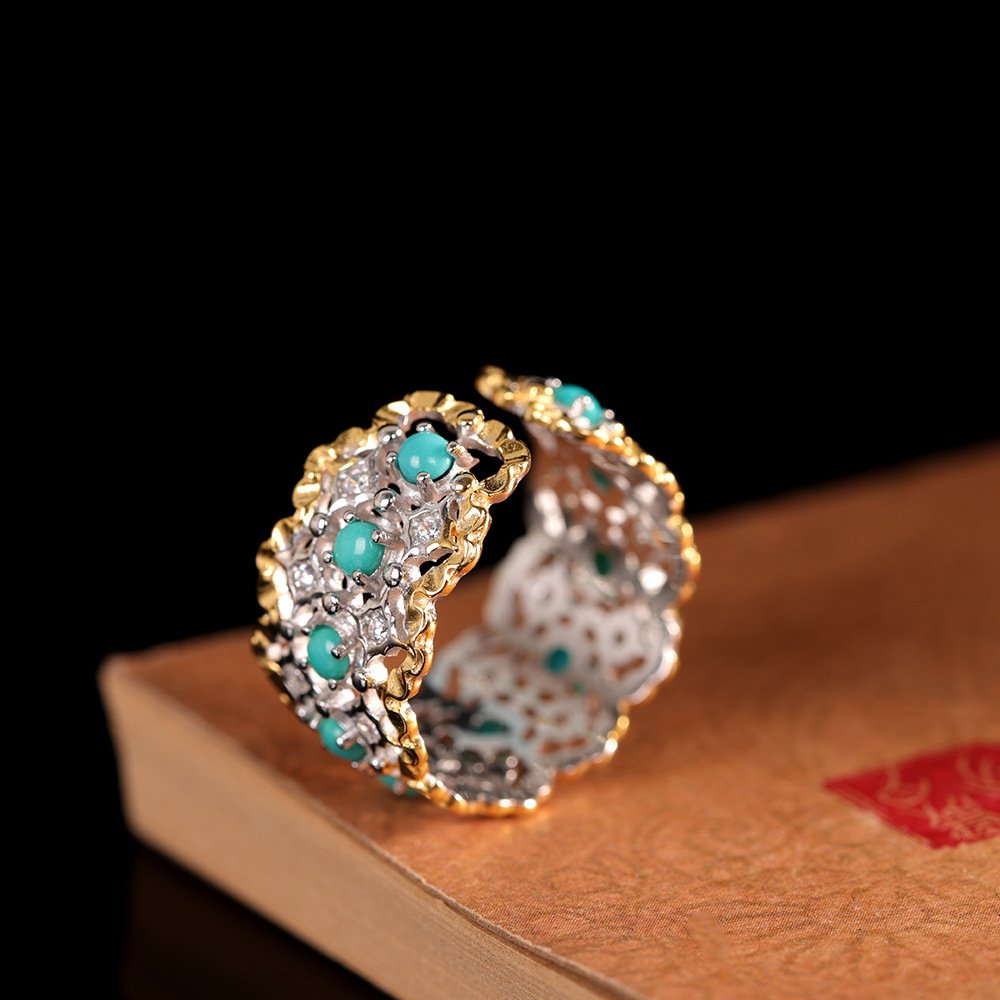 This exquisitely crafted ring is made of premium S925 silver, inlaid with a piece of natural turquoise—a gemstone symbolizing protection and good fortune in Tibetan Buddhist culture. The simple yet elegant design blends traditional ethnic charm with modern aesthetics, making it a perfect accessory for daily wear and a meaningful gift for loved ones.
