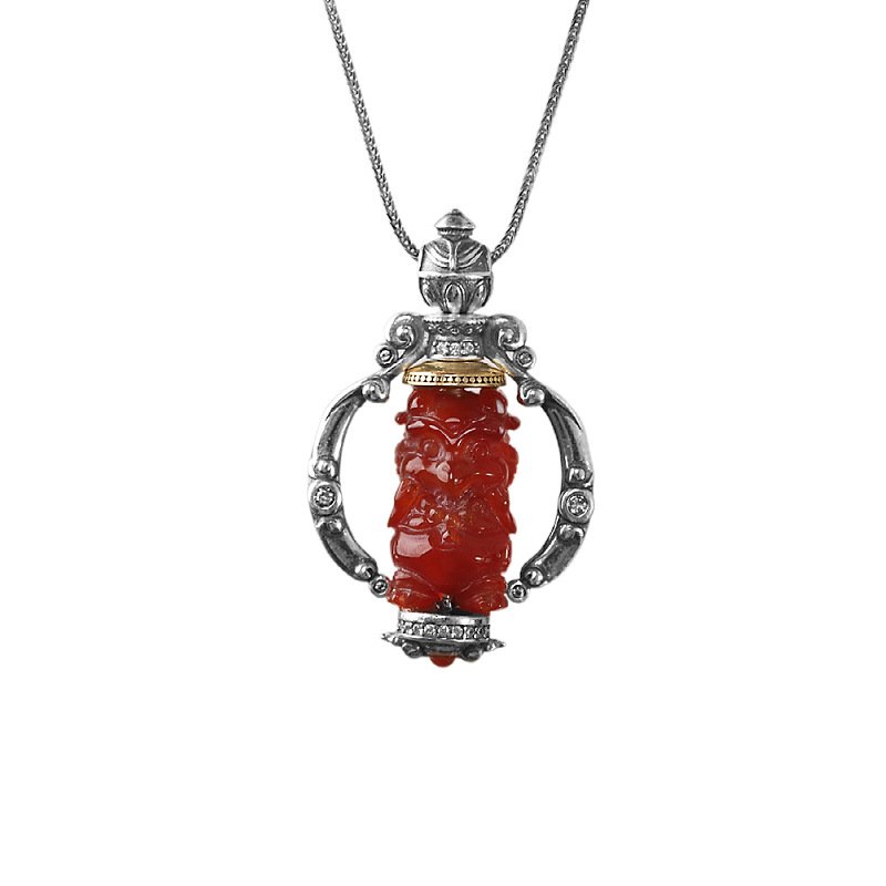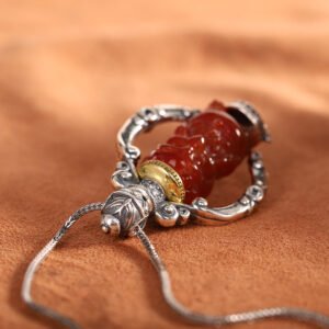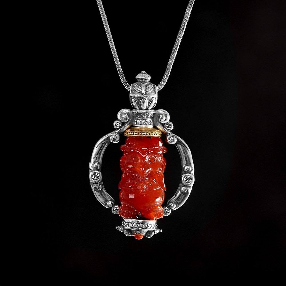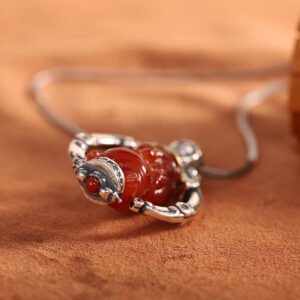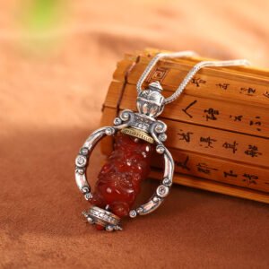 这款精心手工制作的吊坠结合了优质 S925 银和天然玛瑙,其复古设计体现了藏传佛教的深厚底蕴,为佩戴者带来和平与和谐的祝福。