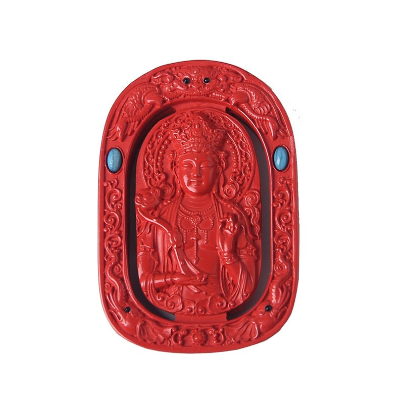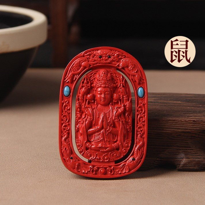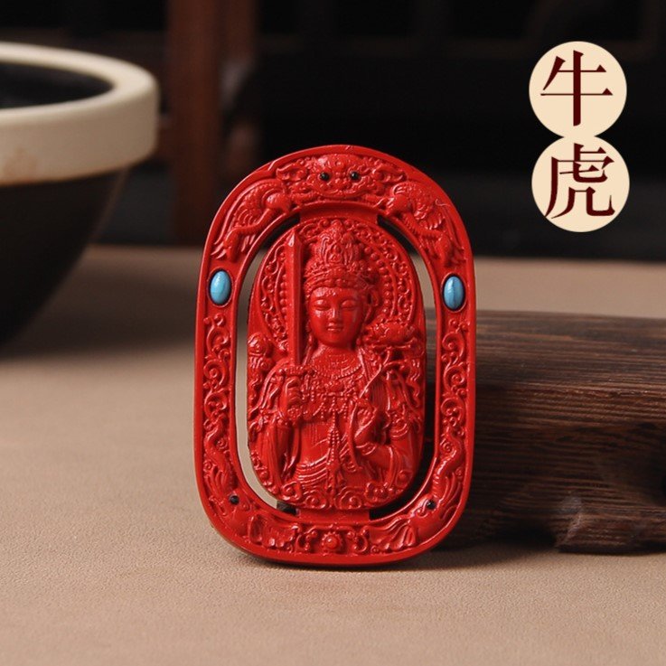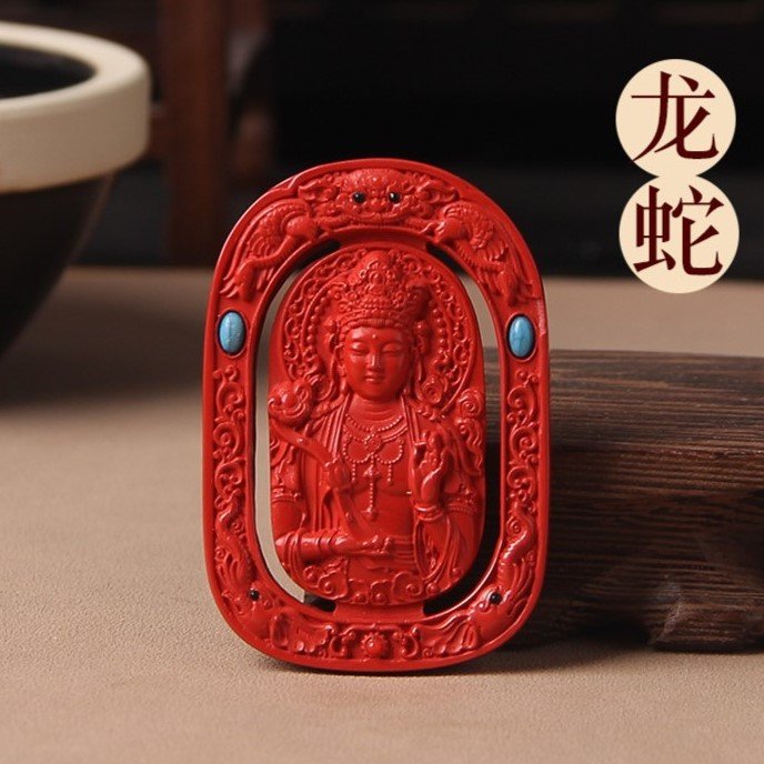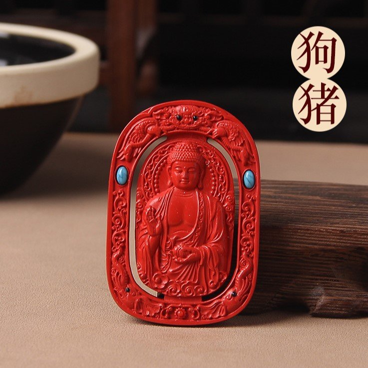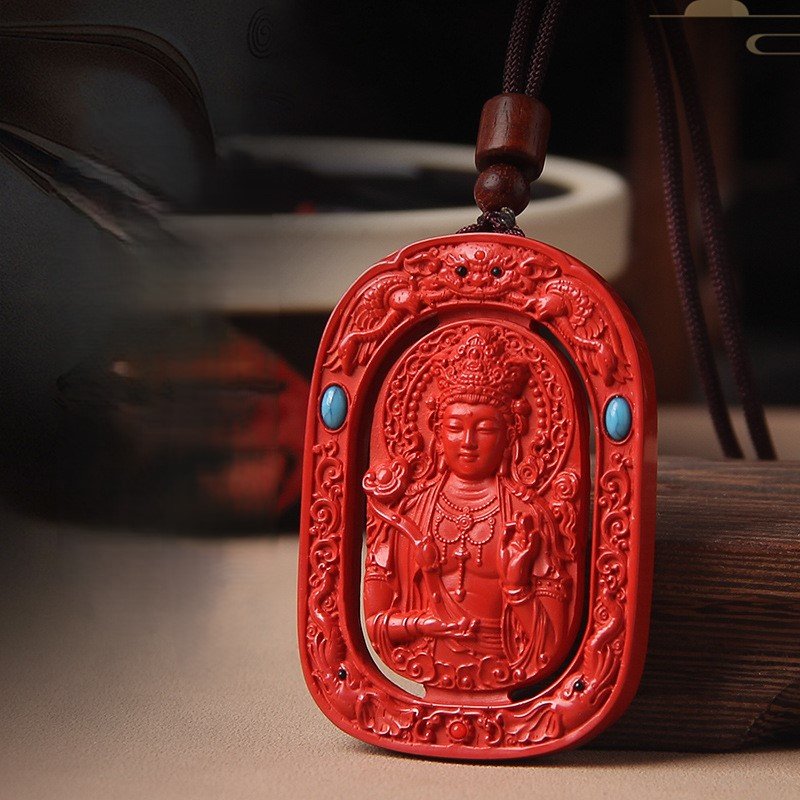 Tibetan Buddhism Premium Guardian Buddha Natural Raw Cinnabar Pendant