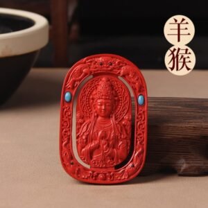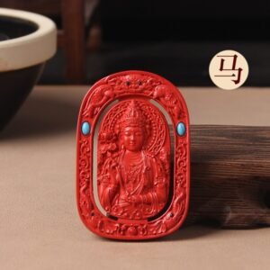 This meticulously crafted pendant draws from Tibetan Buddhist traditions, featuring the revered Guardian Buddha motif. Made of natural raw cinnabar, it is a sacred amulet believed to bring protection, good fortune and spiritual guidance to the wearer.