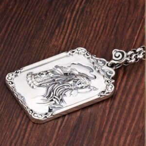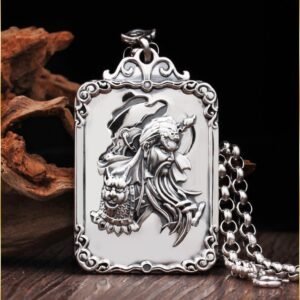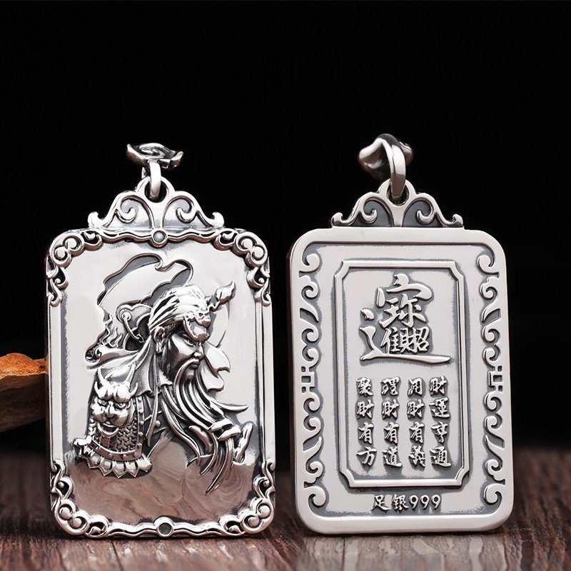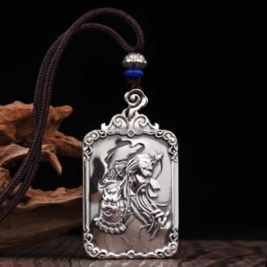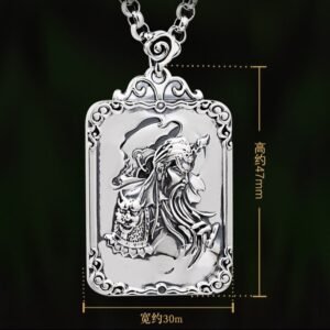 Crafted from pure silver, this pendant features detailed sculptural workmanship that captures Guan Gong’s commanding presence and noble spirit. The substantial weight and refined detailing make it both a powerful talisman and a distinguished statement piece.
