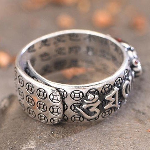 Expertly crafted from solid S925 sterling silver, the ring offers durability, comfort, and detailed workmanship, making it suitable for both spiritual practice and daily wear.