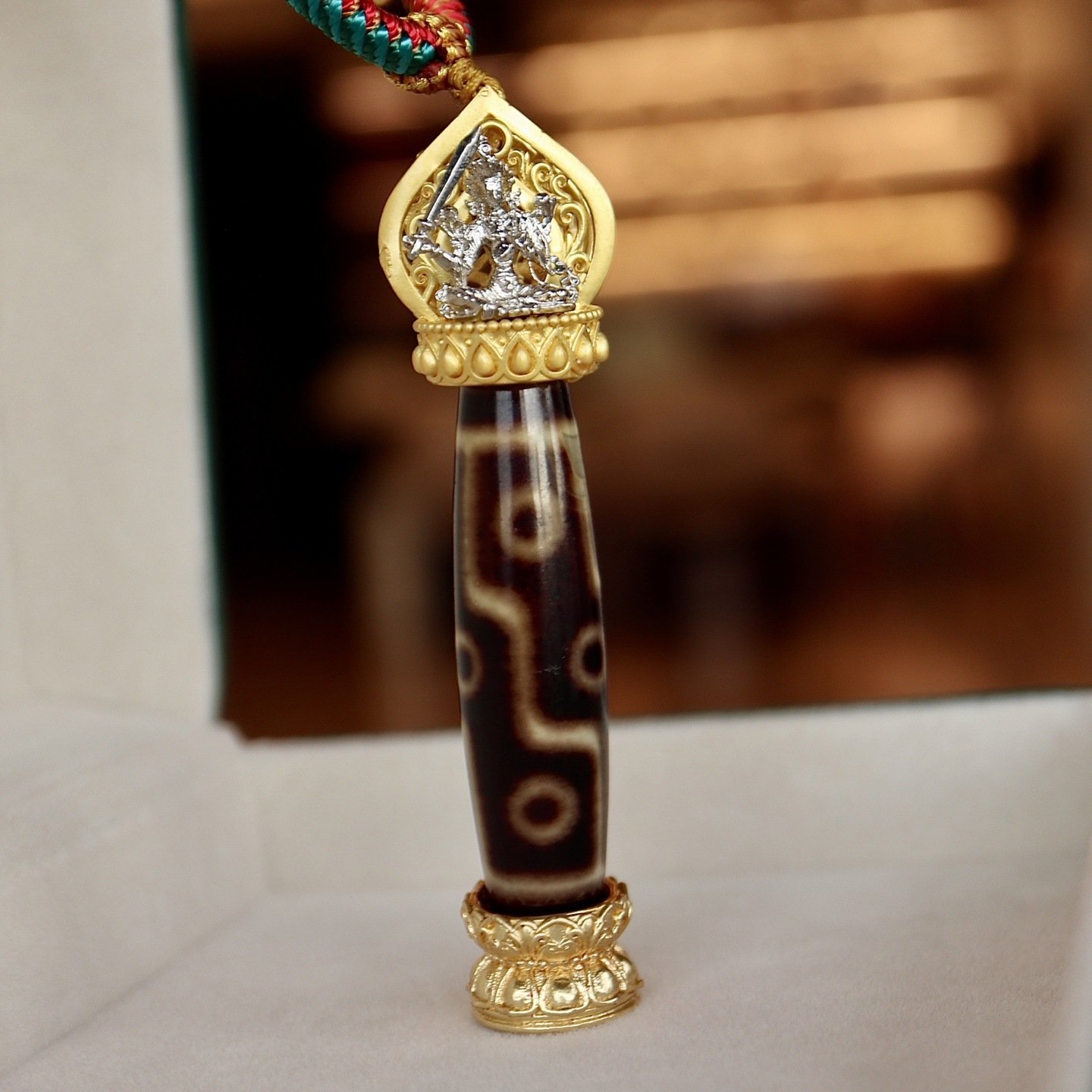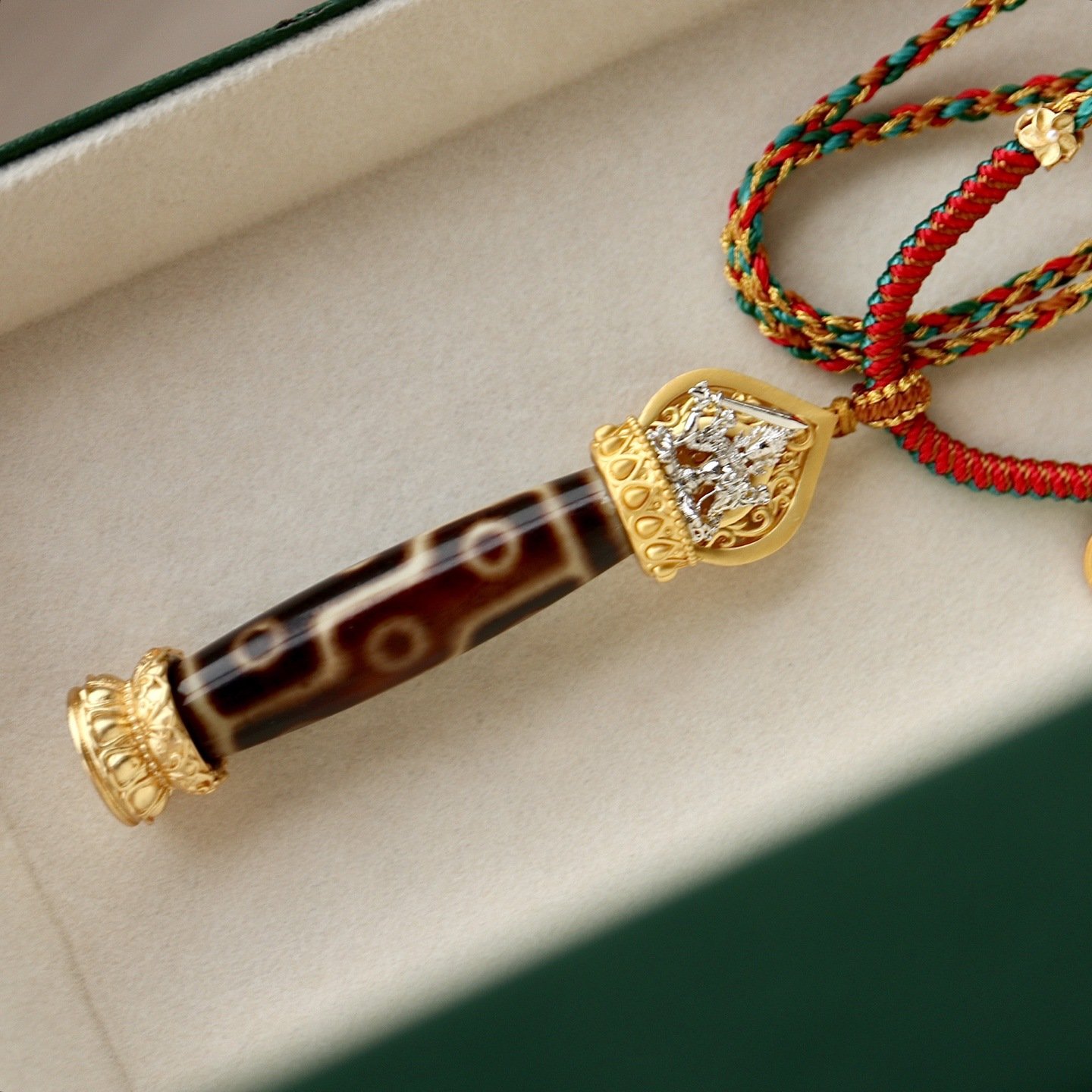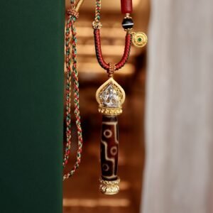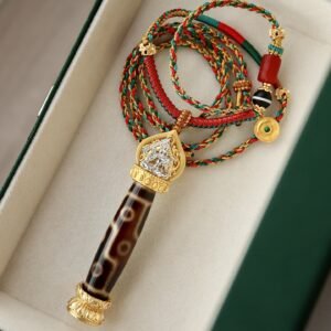 This premium 9-eye dzi bead pendant is a revered treasure of Tibetan Buddhist culture. In Himalayan traditions, the 9-eye dzi is regarded as a symbol of supreme wisdom, abundant fortune and all-round protection, making it a meaningful accessory for daily wear and a precious collectible for dzi bead enthusiasts.