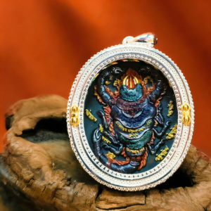 This exquisite pendant features the sacred iron scorpion motif—a symbol of fearless protection in Tibetan Buddhism—and the blessed tsa tsa element. Hand-painted with natural mineral pigments, it carries profound spiritual meaning, serving as a powerful amulet for daily wear and a precious collectible for lovers of ethnic religious jewelry.