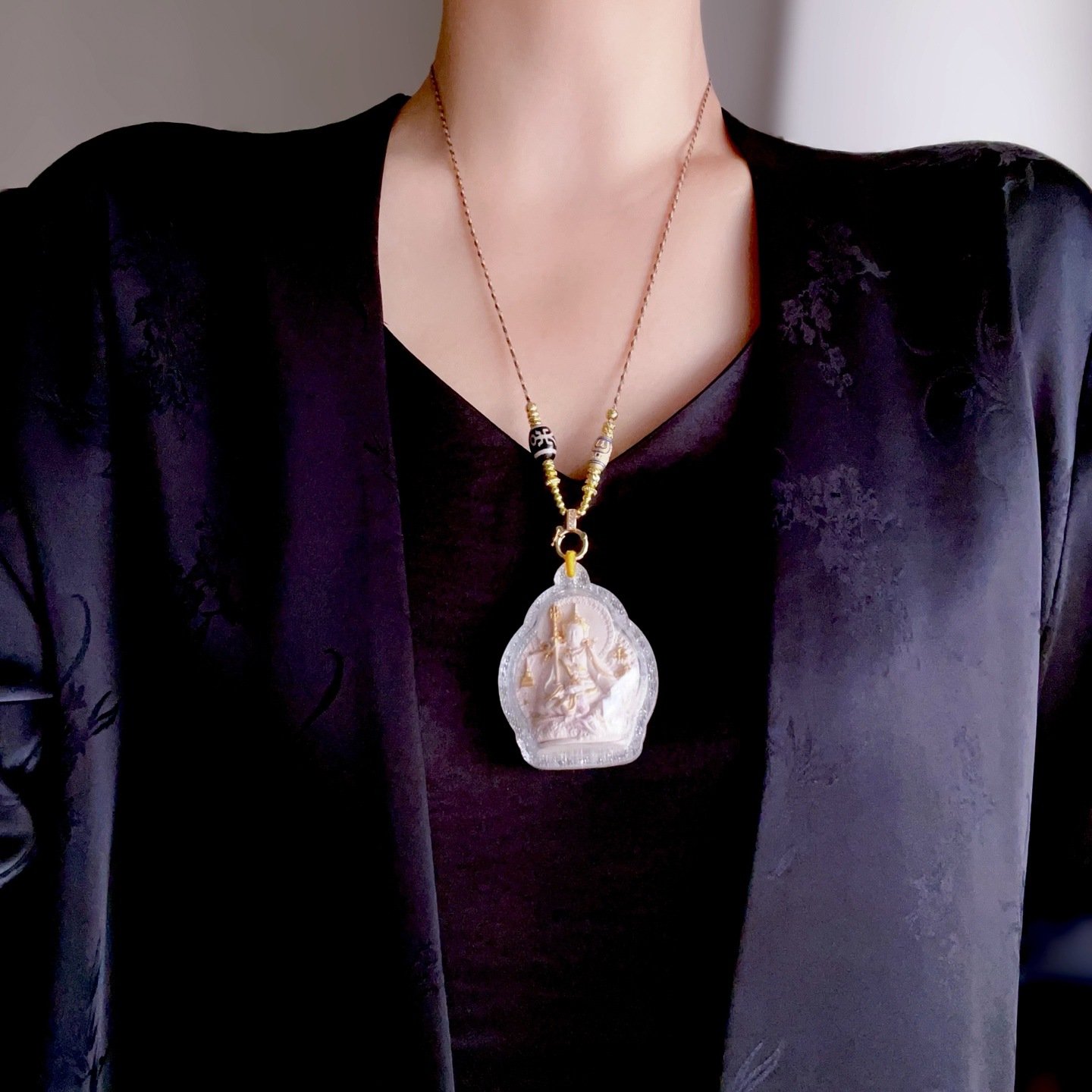 This exquisite thangka pendant is a masterpiece of Tibetan Buddhist art, adorned with a delicately crafted sacred ash tsa tsa motif and hand-painted with natural mineral pigments. In Himalayan culture, tsa tsa is regarded as a symbol of blessing and protection, making this pendant not only a unique piece of jewelry but also a meaningful spiritual amulet for daily wear and collection.
