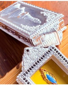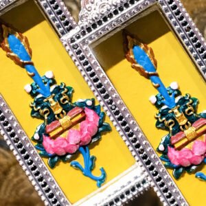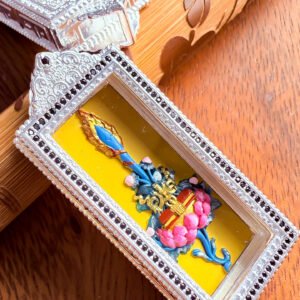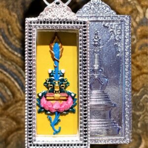 This exquisite pendant honors Manjushri, the Bodhisattva of Wisdom, whose sacred abode is Wutai Mountain. Adorned with the iconic Manjushri Sword motif and blessed tsa tsa, it is hand-painted with natural mineral pigments. In Tibetan Buddhism, this piece symbolizes the power of wisdom to cut through ignorance, making it a meaningful accessory for daily wear and a precious collectible for spiritual jewelry lovers.
