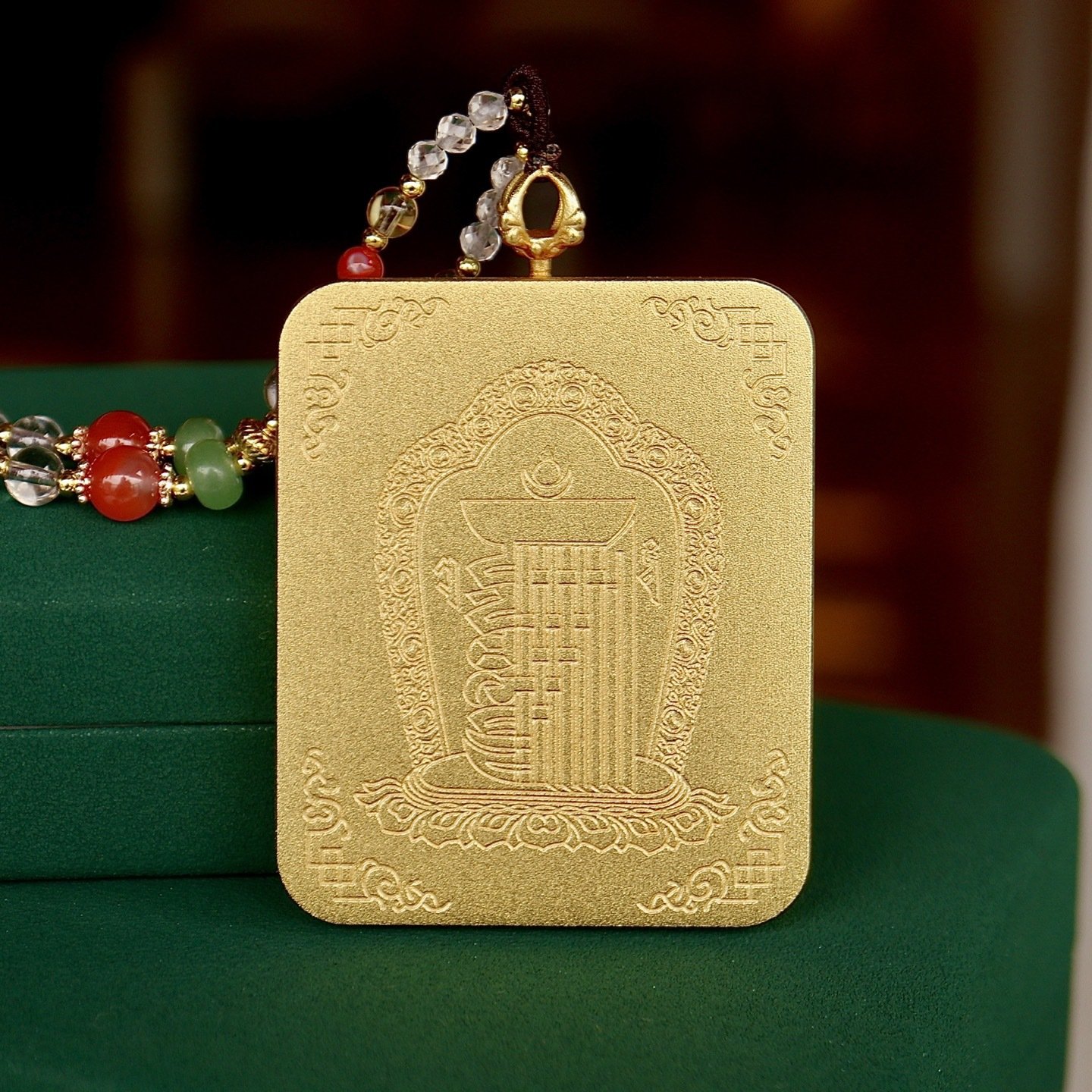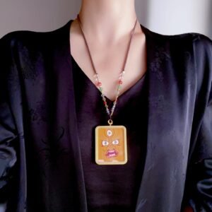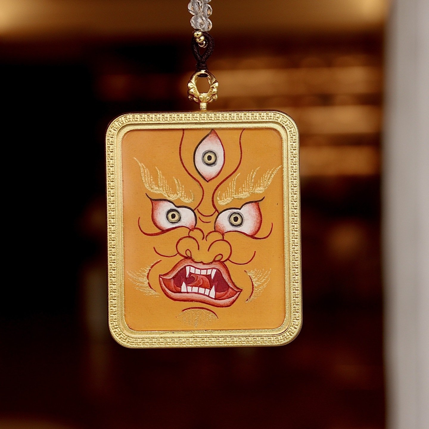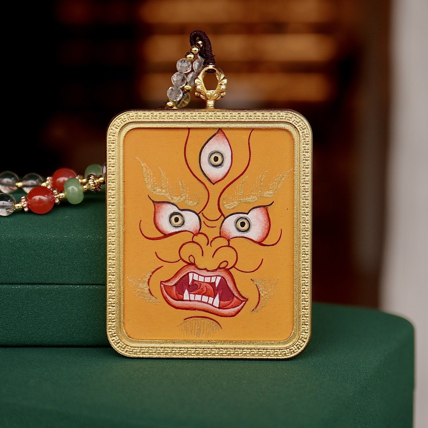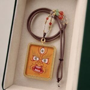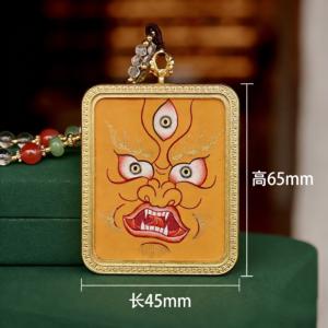 This exquisite thangka pendant showcases the sacred figure of Yellow Jambhala, the revered deity of wealth and prosperity in Tibetan Buddhism. Hand-painted with natural mineral pigments, it blends traditional Himalayan artistry with profound spiritual meaning, making it a unique accessory for daily wear and a precious collectible for lovers of ethnic culture and spiritual jewelry.