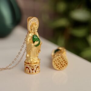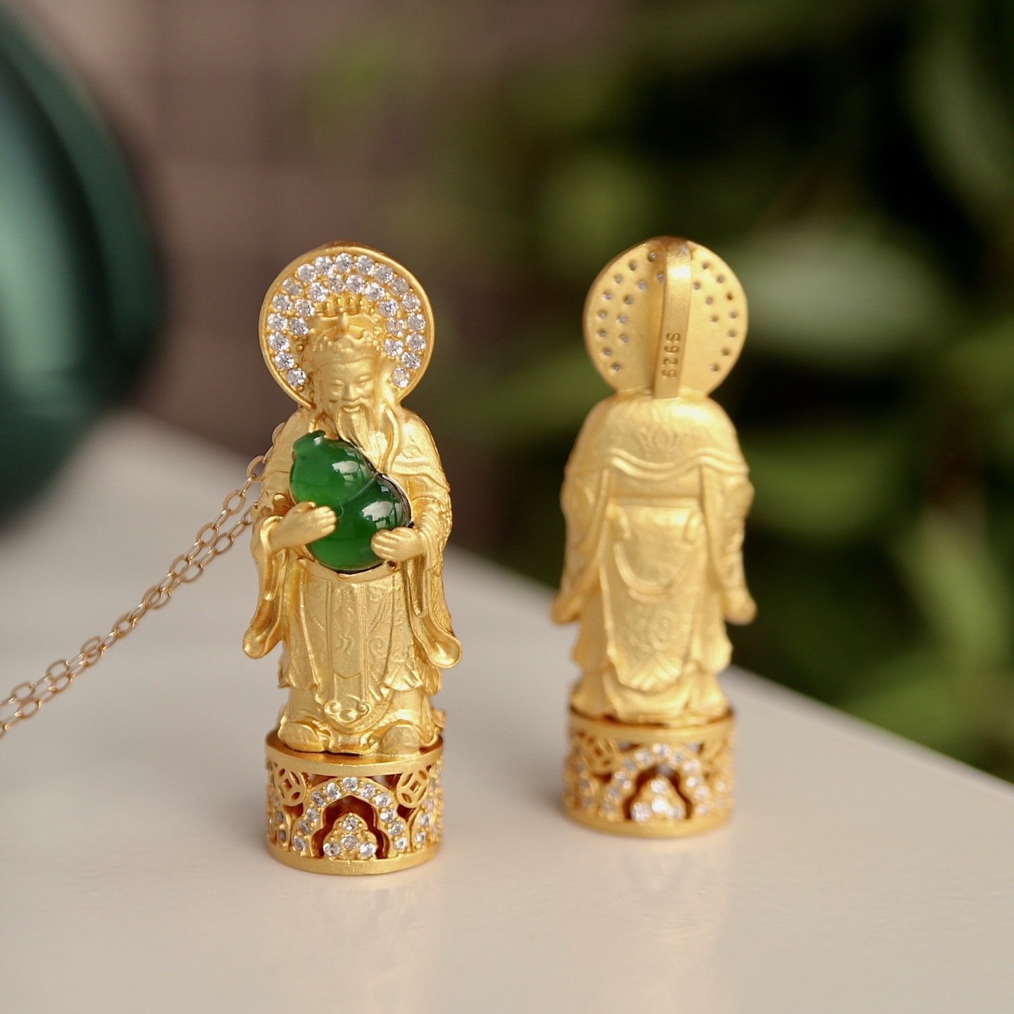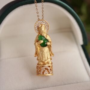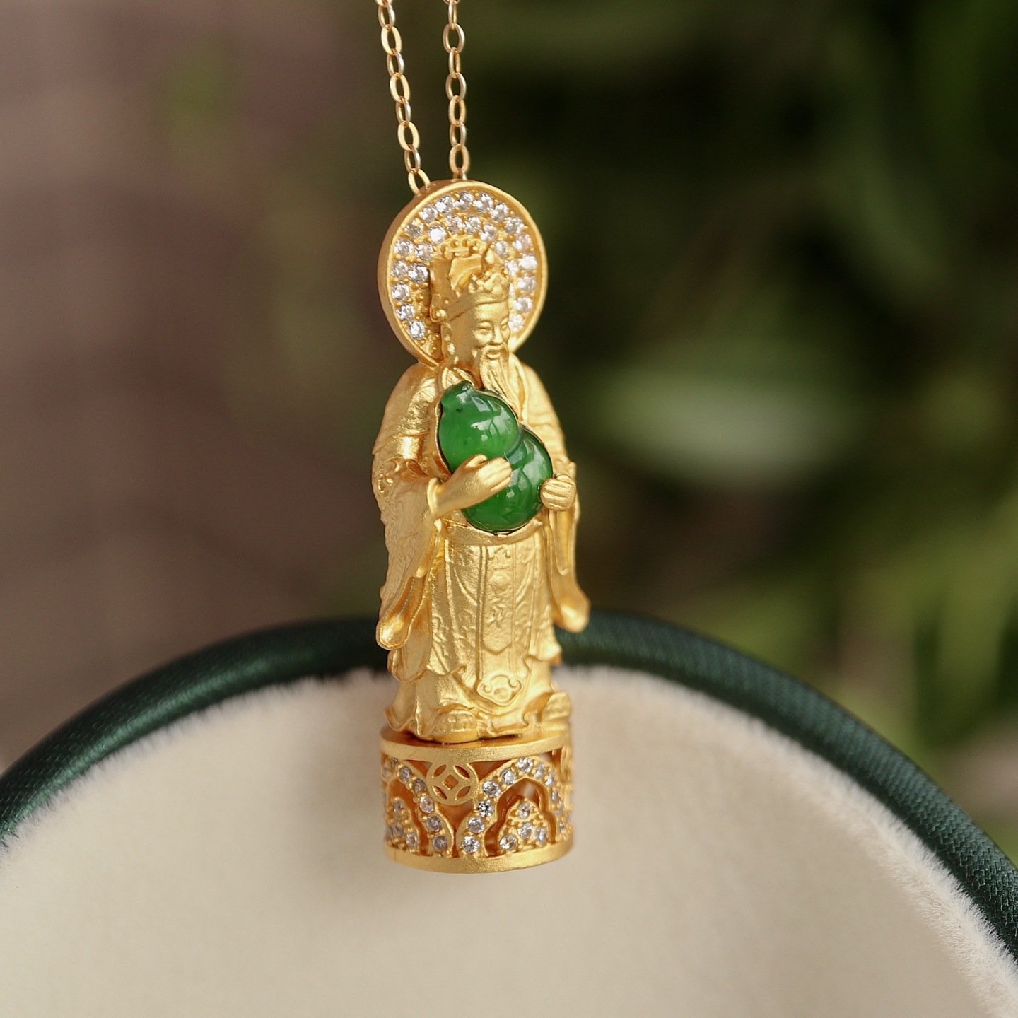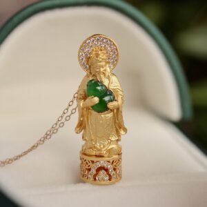This premium pendant is crafted from genuine Hetian jade, shaped into a traditional gourd—a symbol of good fortune in Eastern culture—and engraved with the sacred Jambhala motif. In Tibetan Buddhism, Jambhala represents wealth and prosperity, making this piece a perfect blend of Himalayan spirituality and Chinese jade artistry. It is an ideal accessory for daily wear and a precious collectible for lovers of ethnic jewelry.