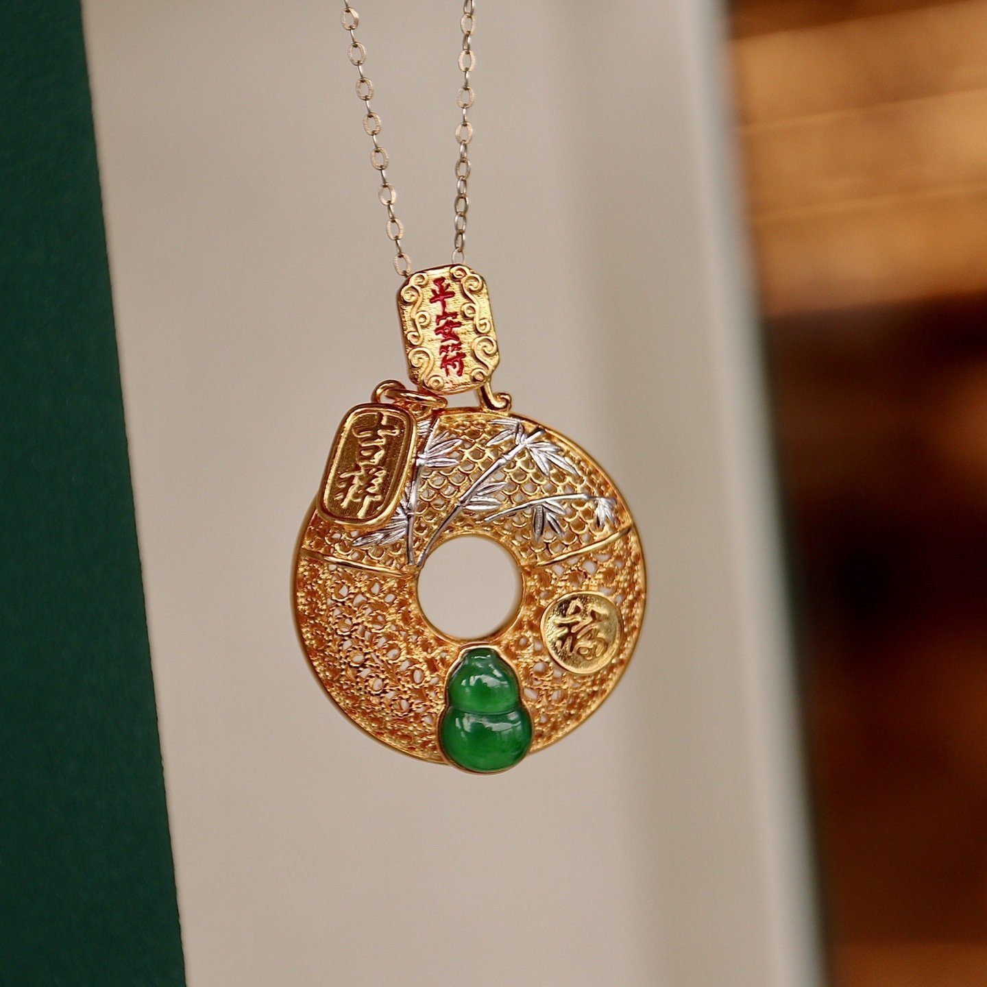 这款精美的藏传佛教吊坠采用天然翡翠精制而成,雕刻成象征吉祥的葫芦形状,在东方文化中寓意吉祥如意。作为一件神圣的护身符,它蕴含着守护和祝福的深厚精神意义,是日常佩戴的完美饰品,也是馈赠喜爱民族风首饰人士的理想之选。