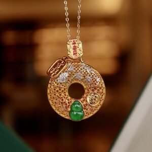 Tibetan Buddhist Premium Natural Jadeite Gourd Peace Talisman Pendant – Spiritual Protection Amulet