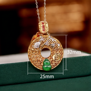 这款精美的藏传佛教吊坠采用天然翡翠精制而成,雕刻成象征吉祥的葫芦形状,在东方文化中寓意吉祥如意。作为一件神圣的护身符,它蕴含着守护和祝福的深厚精神意义,是日常佩戴的完美饰品,也是馈赠喜爱民族风首饰人士的理想之选。
