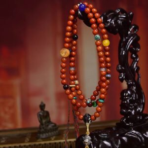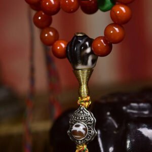 This extraordinary mala is a treasured piece of Tibetan cultural heritage, combining intricately carved bone beads with smooth, natural agate. The vintage finish carries the unique charm of retro Himalayan craftsmanship, while each bead holds profound spiritual significance for meditation and mindfulness practice. It is not only a sacred accessory for spiritual rituals, but also a valuable collectible for enthusiasts of Tibetan ethnic art.