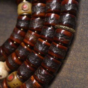 Tibetan Buddhist Premium Vintage Carved Yak Bone Nine Palaces Bagua Mala – 108 Prayer Beads