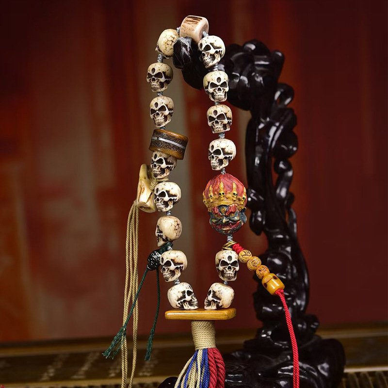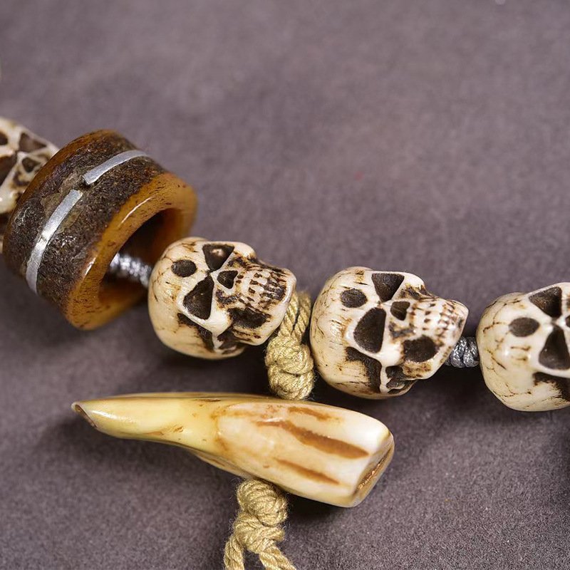 Tibetan Buddhist Premium Vintage Citipati Carved Bone Mala Prayer Beads