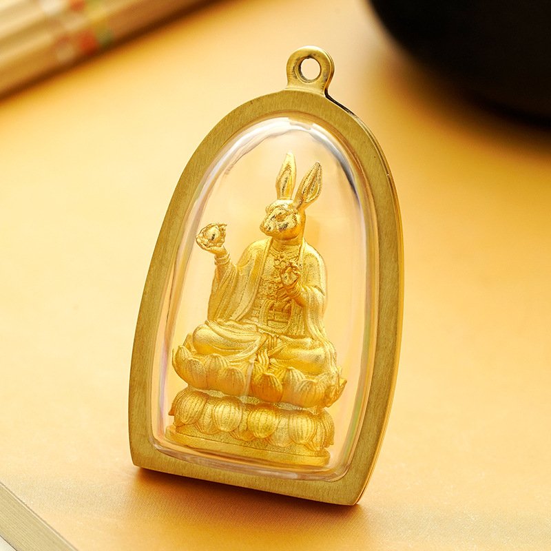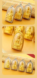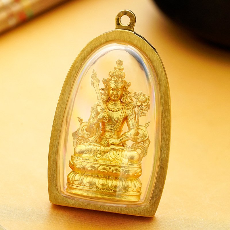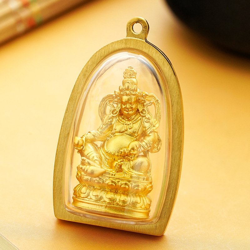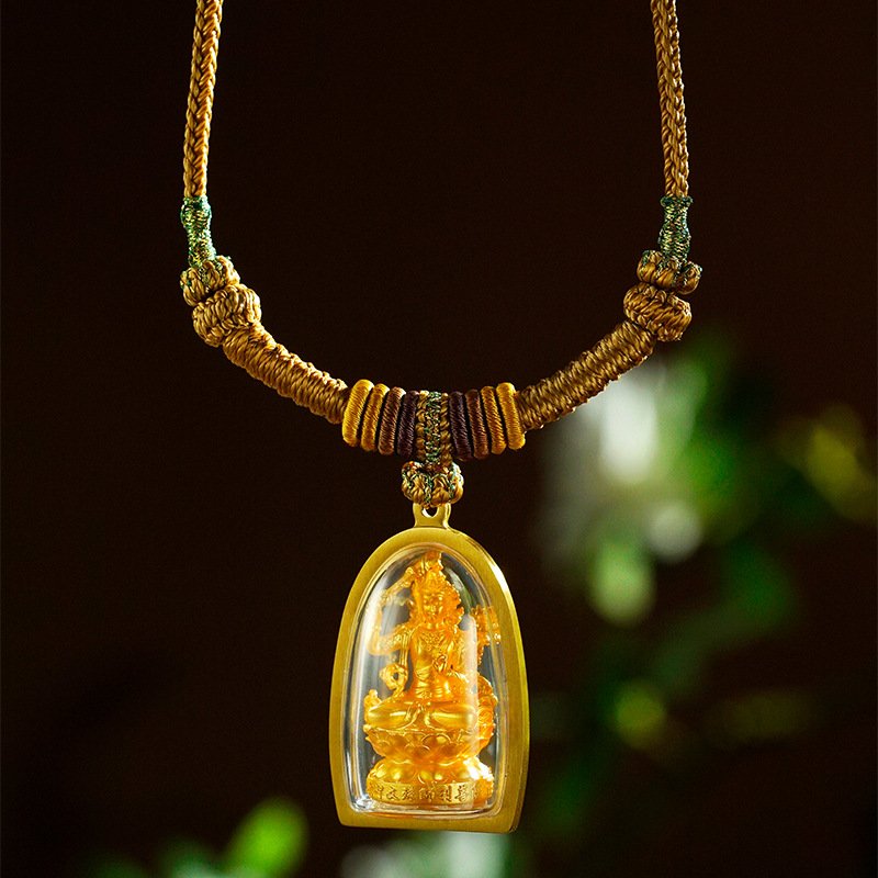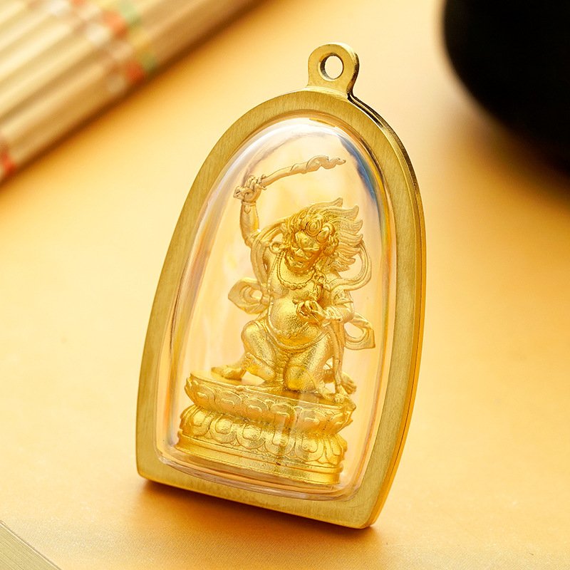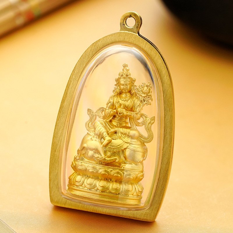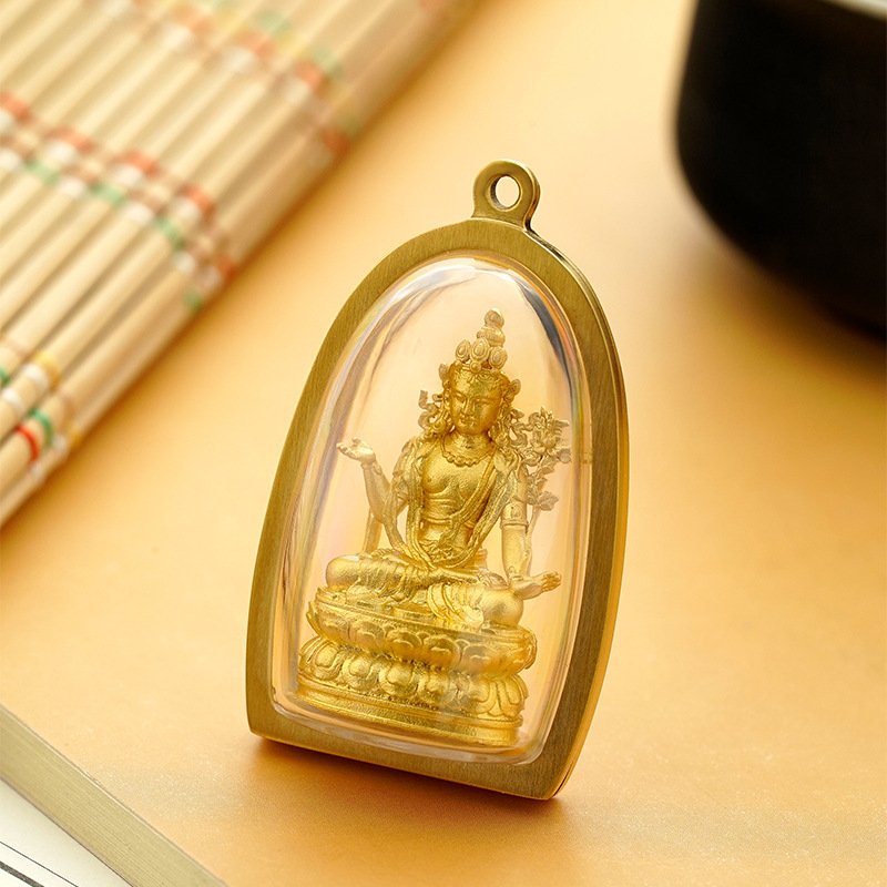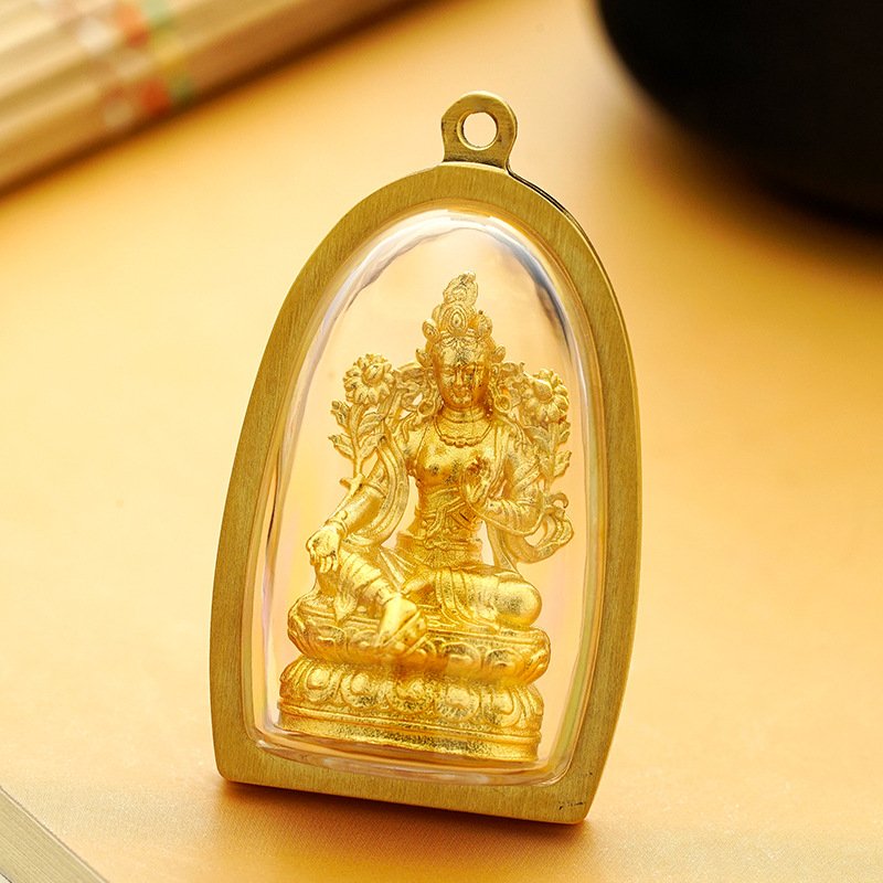 Tibetan Buddhist Sacred Tsa-Tsa Thangka Pendant in Gold Finish