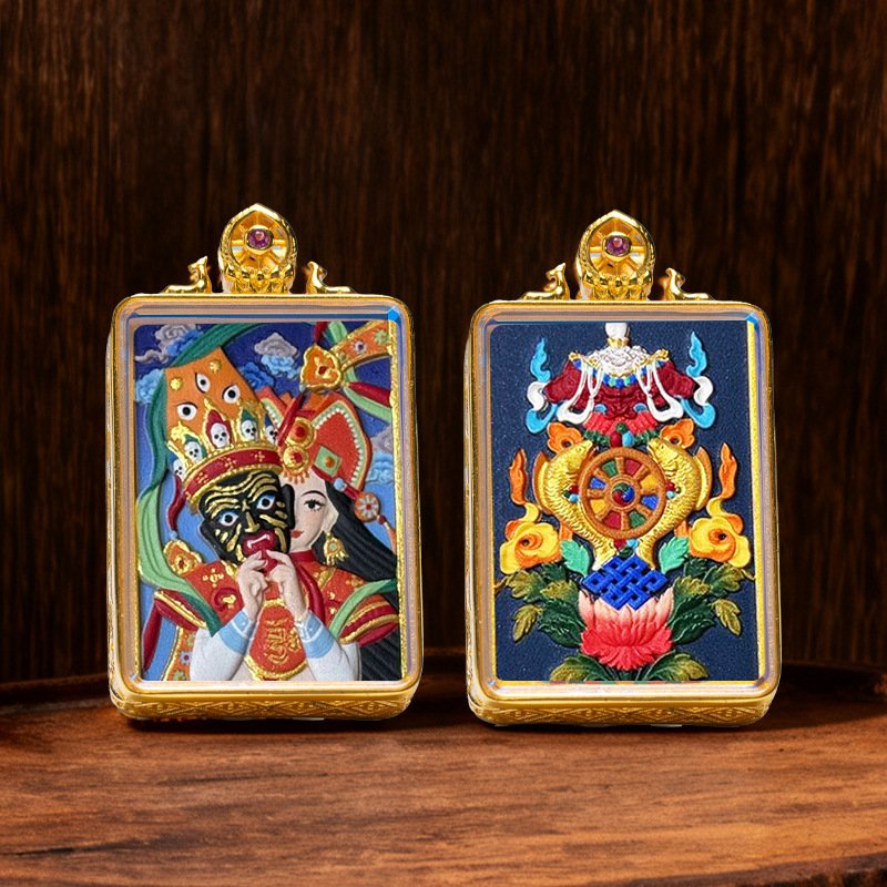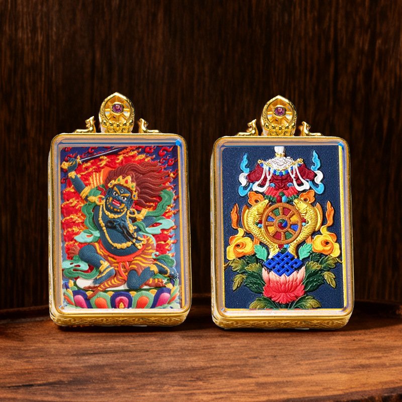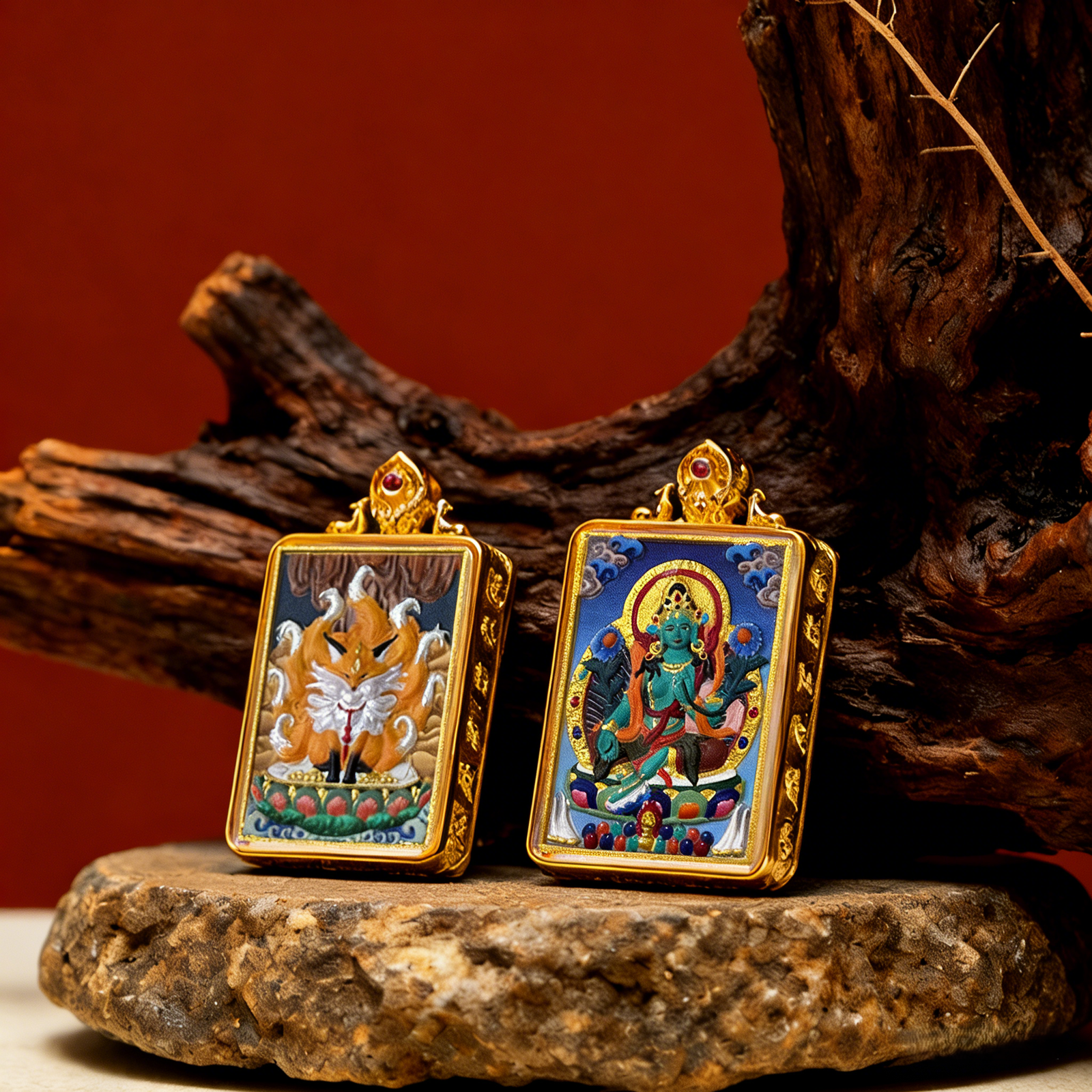 WenZhen Aura Authentic Tibetan Buddhist Hand-Painted Tsa Tsa Thangka Pendant