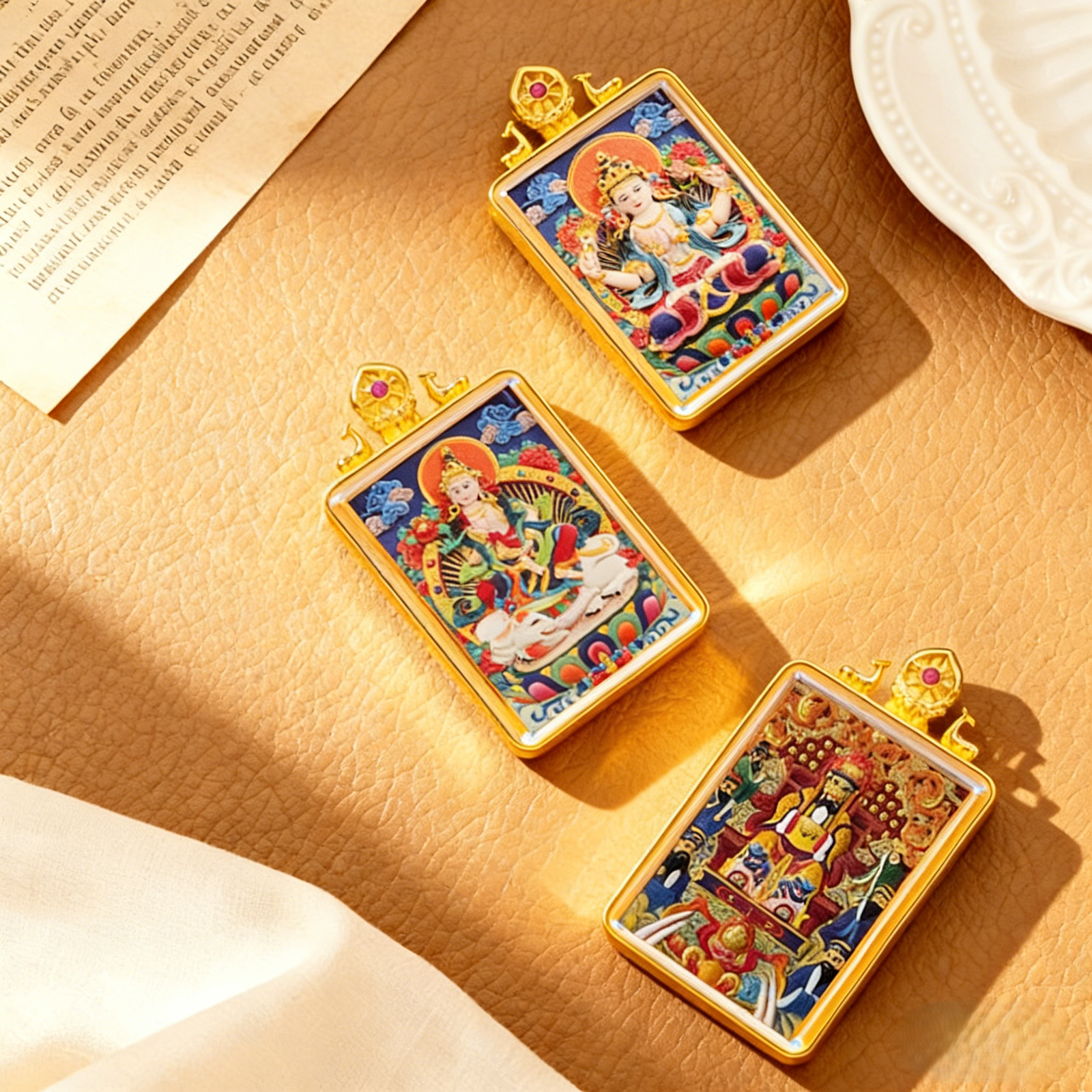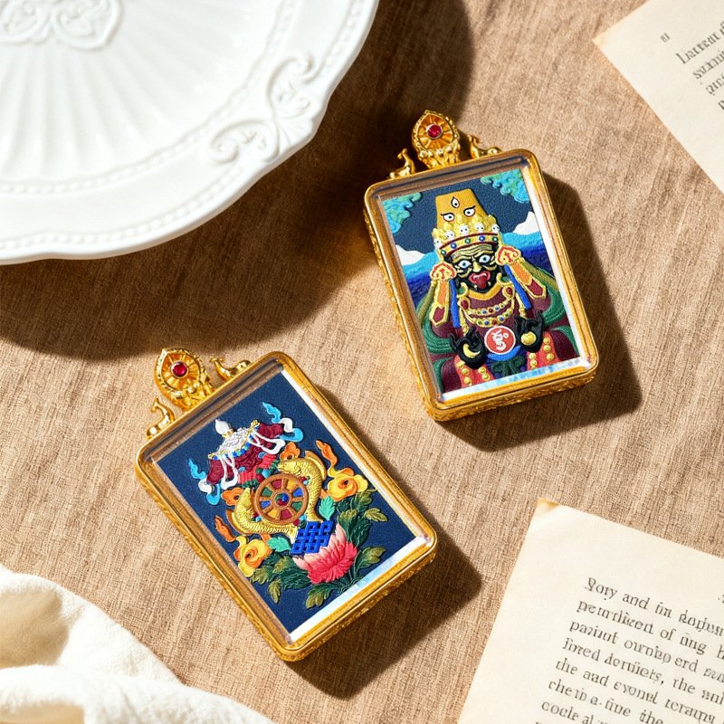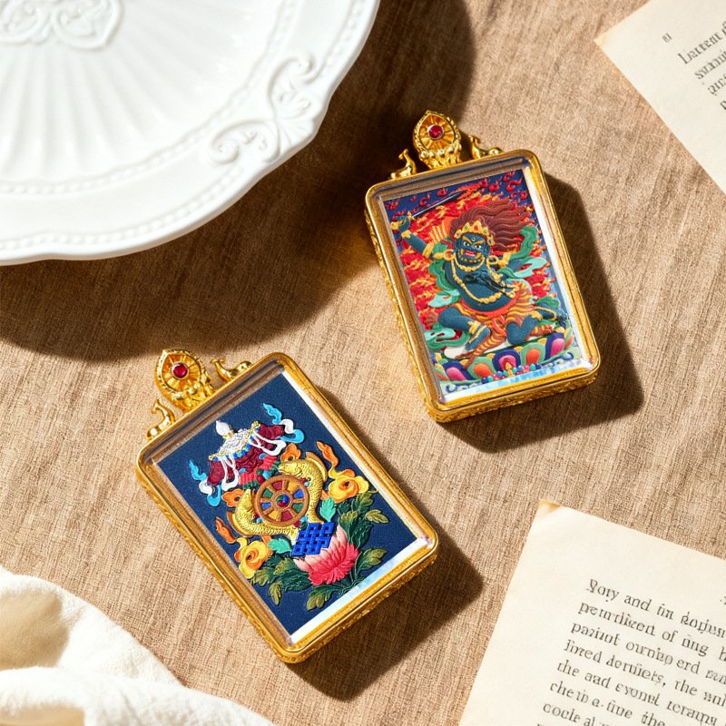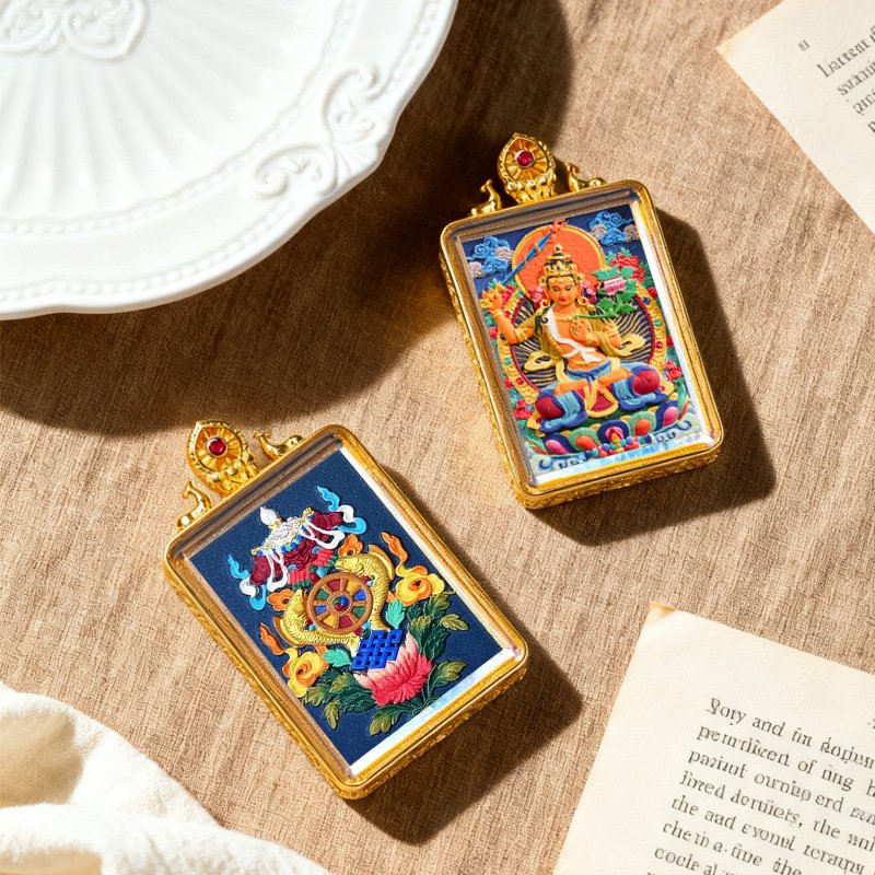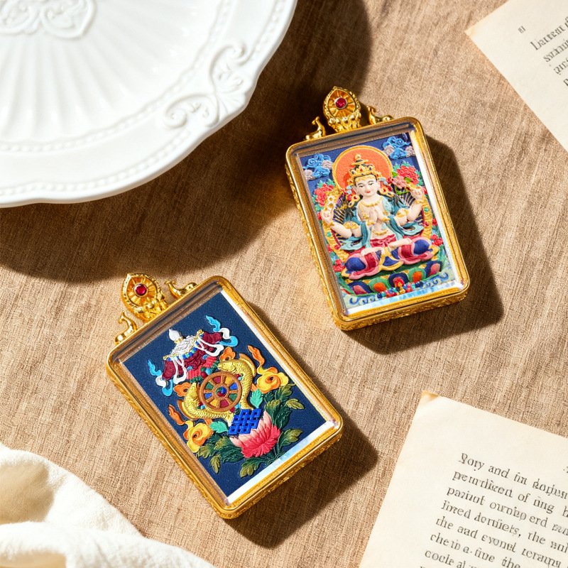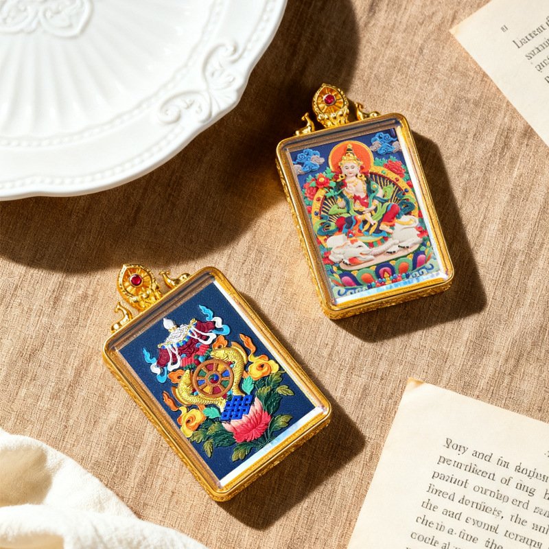 WenZhen Aura Authentic Tibetan Buddhist Hand-Painted Tsa Tsa Thangka Pendant