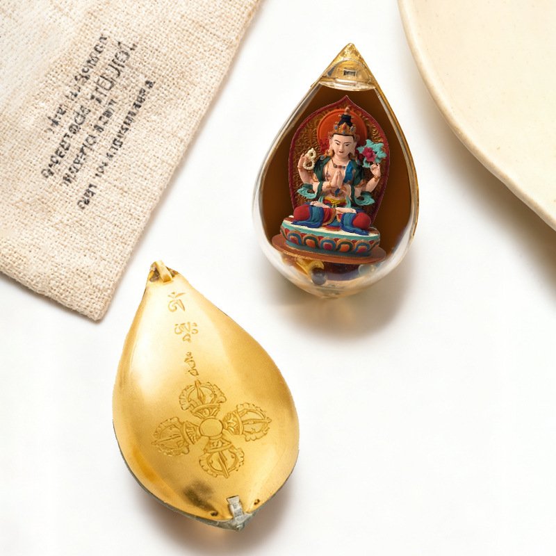 WenZhen Aura Authentic Tibetan Buddhist Hand-Painted Tsa Tsa Thangka Pendant