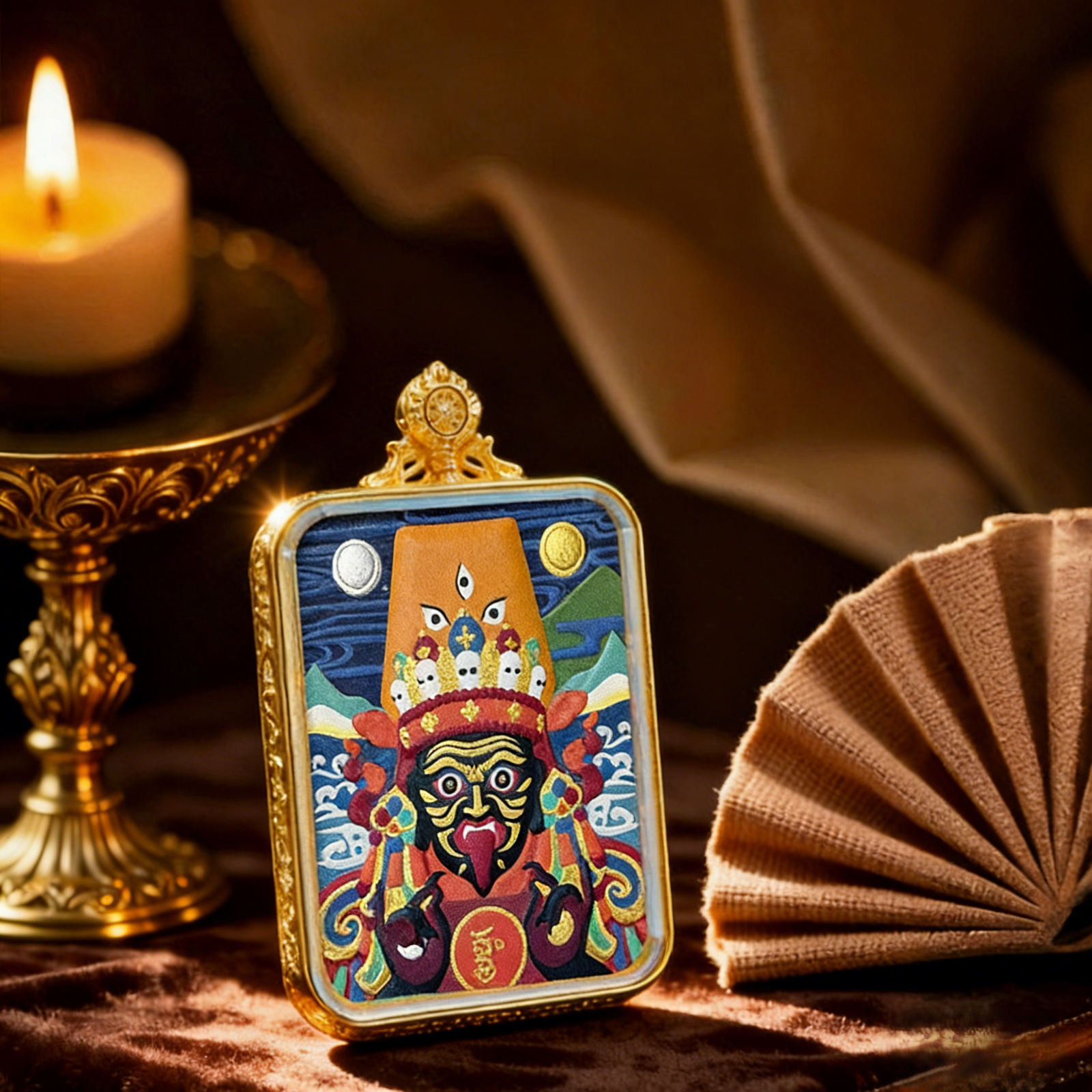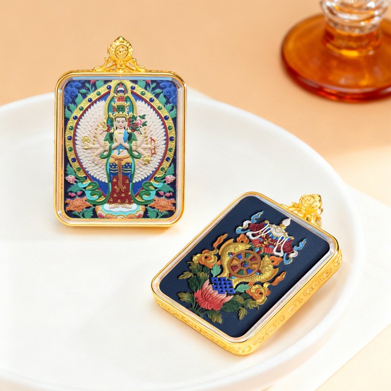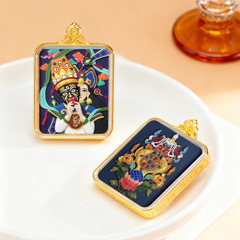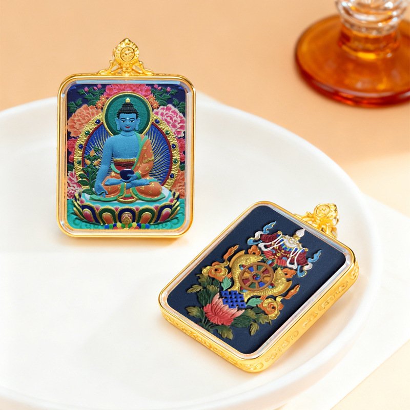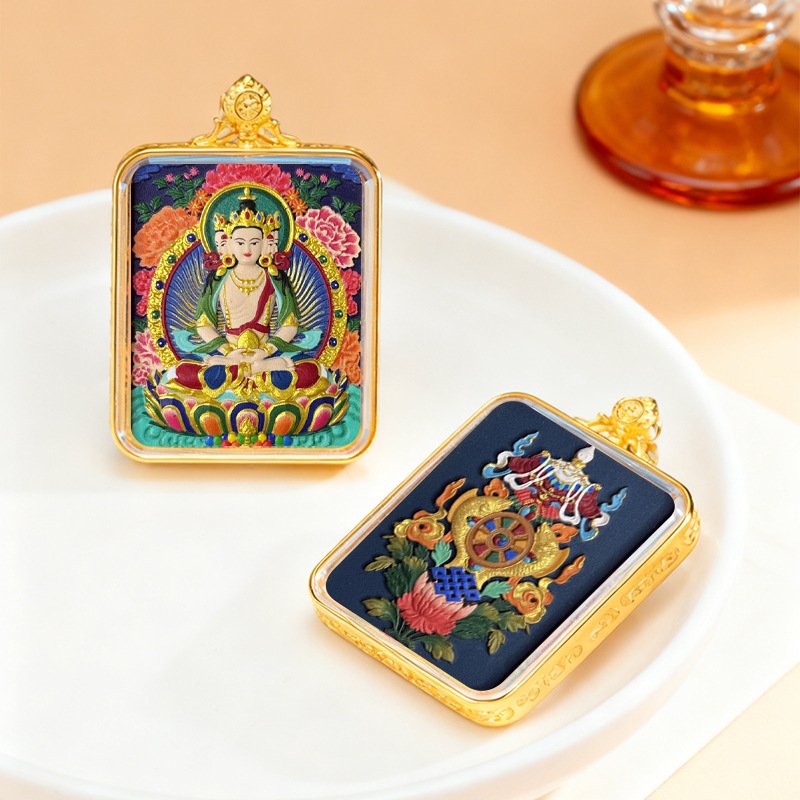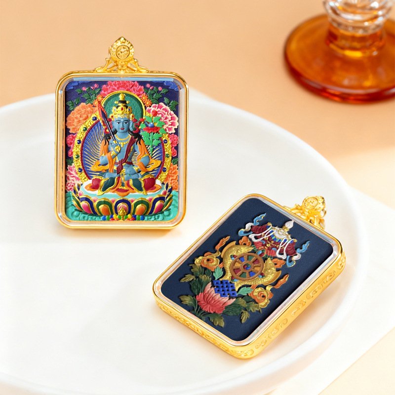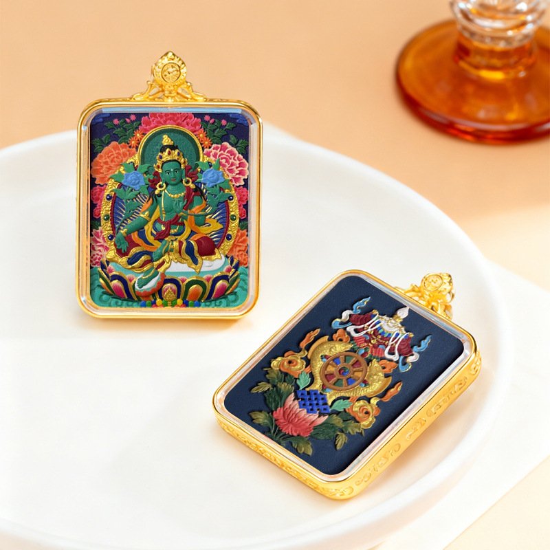 WenZhen Aura Authentic Tibetan Buddhist Hand-Painted Tsa Tsa Thangka Pendant