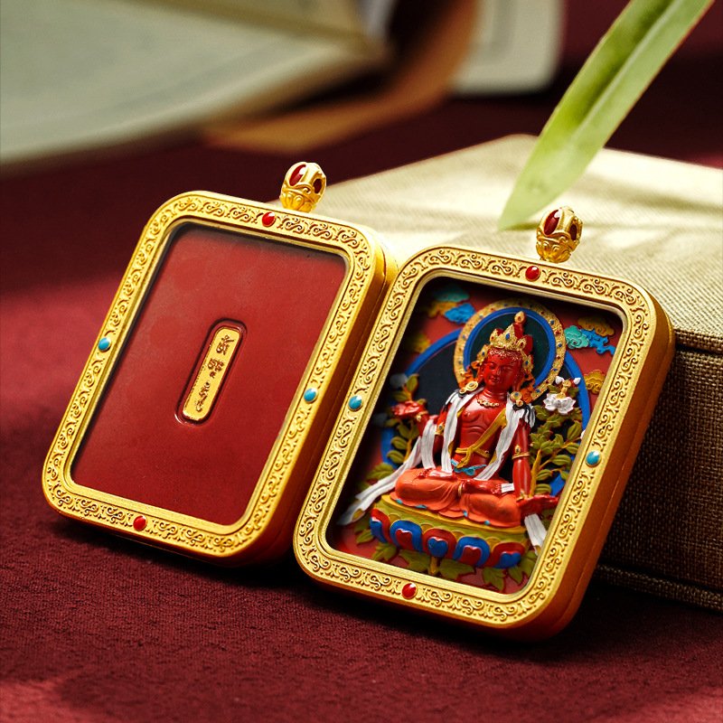 WenZhen Aura Authentic Tibetan Buddhist Hand-Painted Tsa Tsa Thangka Pendant