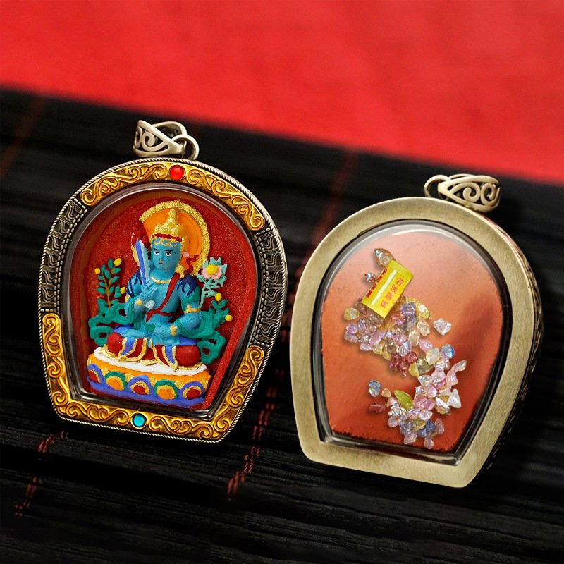 WenZhen Aura Hand-Painted Life Patron Buddha Thangka Pendant