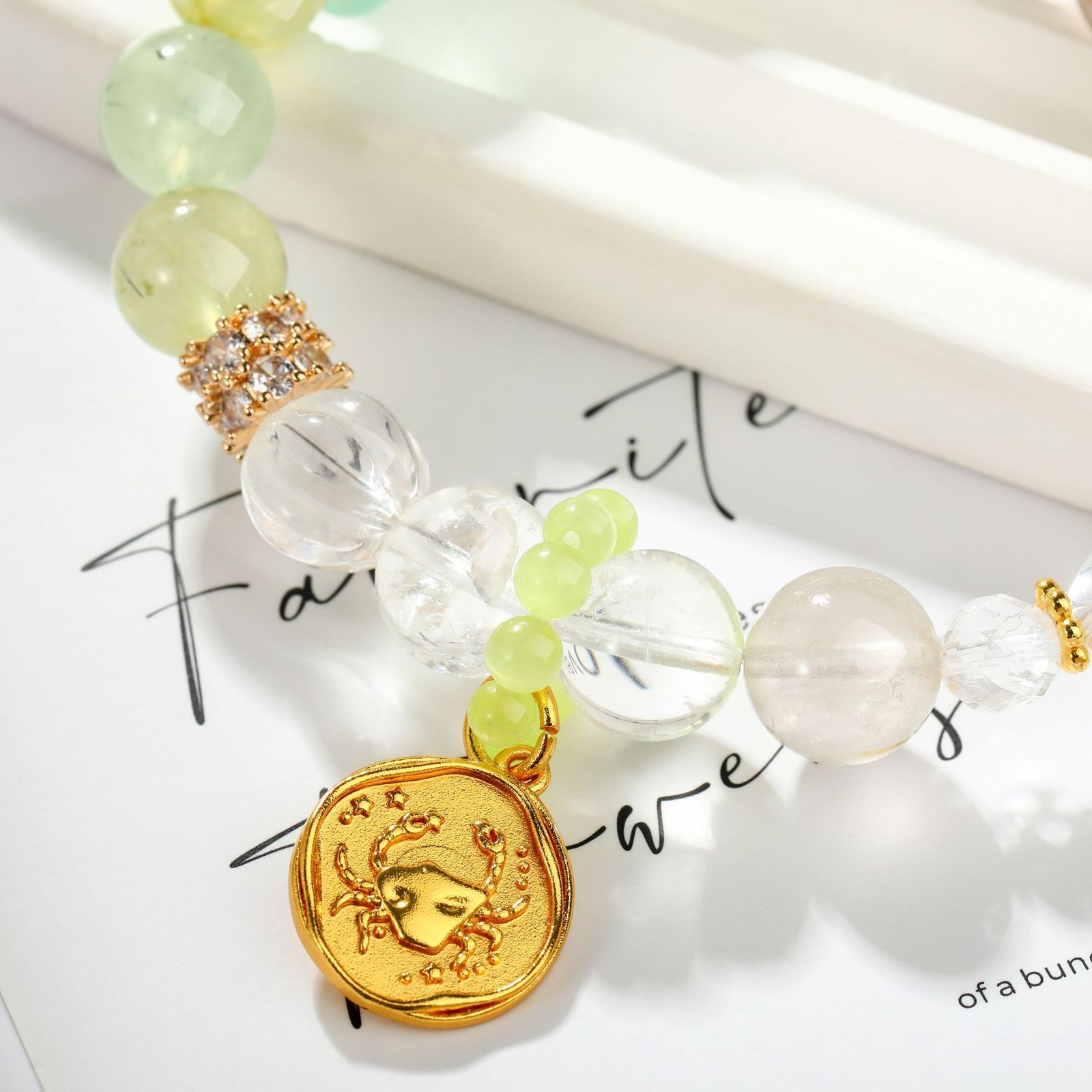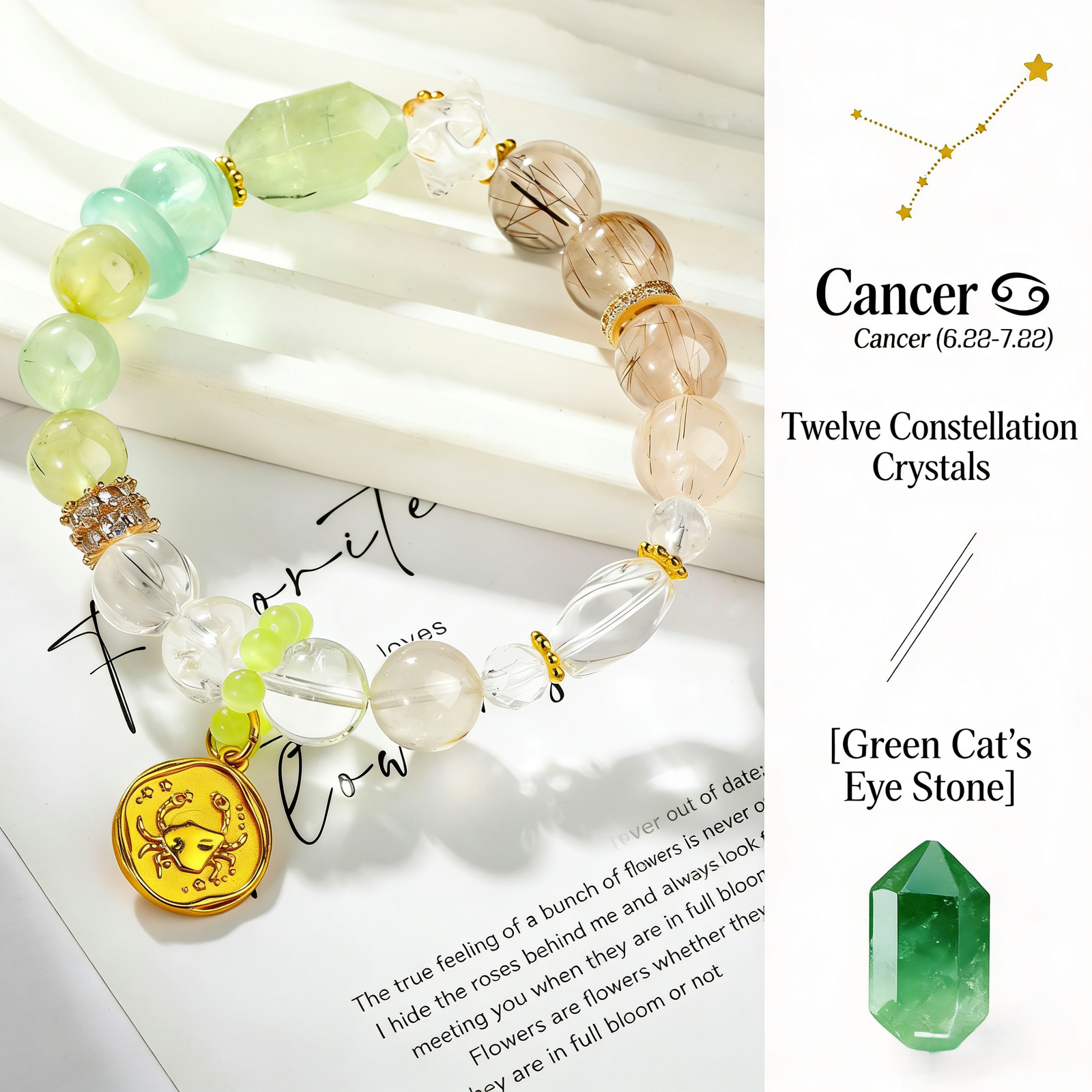Zodiac Collection – Cancer Natural Green Azeztulite & Prehnite Fashion Beaded Crystal Bracelet