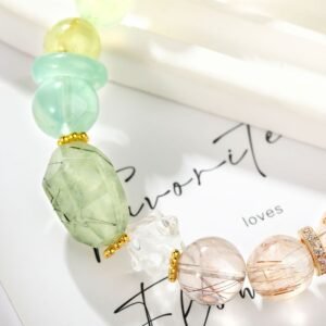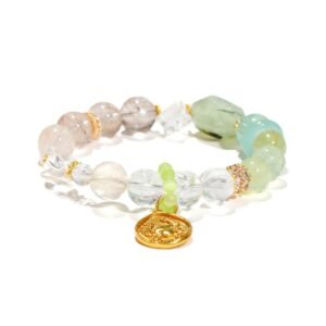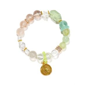 This gentle Cancer bracelet is handcrafted with natural green azeztulite and prehnite. Green azeztulite is cherished for its soothing spiritual energy, while prehnite is known as a stone of calm and emotional healing. It’s a perfect accessory for the nurturing and intuitive Cancer to complement their gentle style.