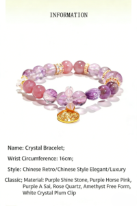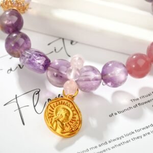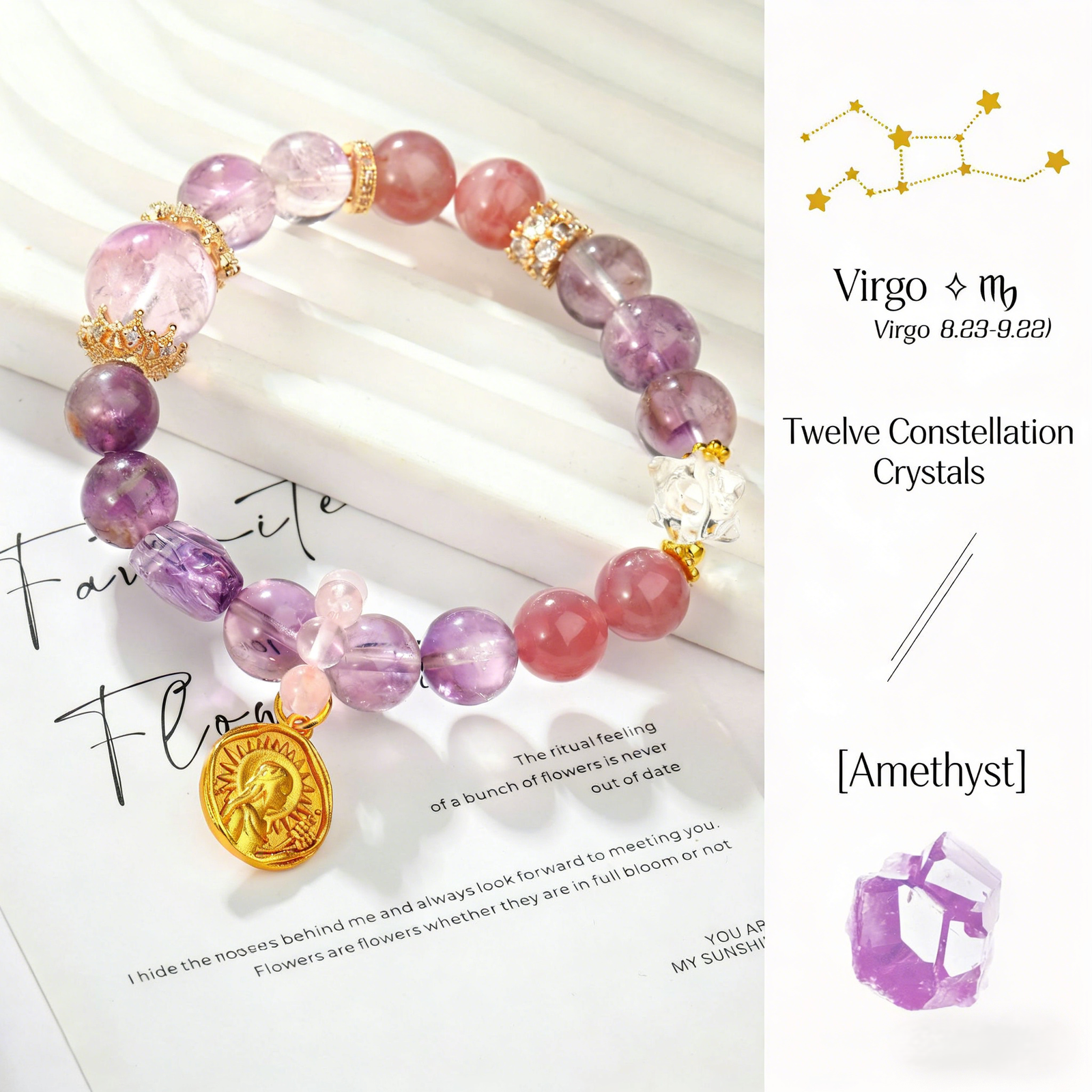 Zodiac Collection – Virgo Natural Purple Phantom Crystal Beaded Bracelet